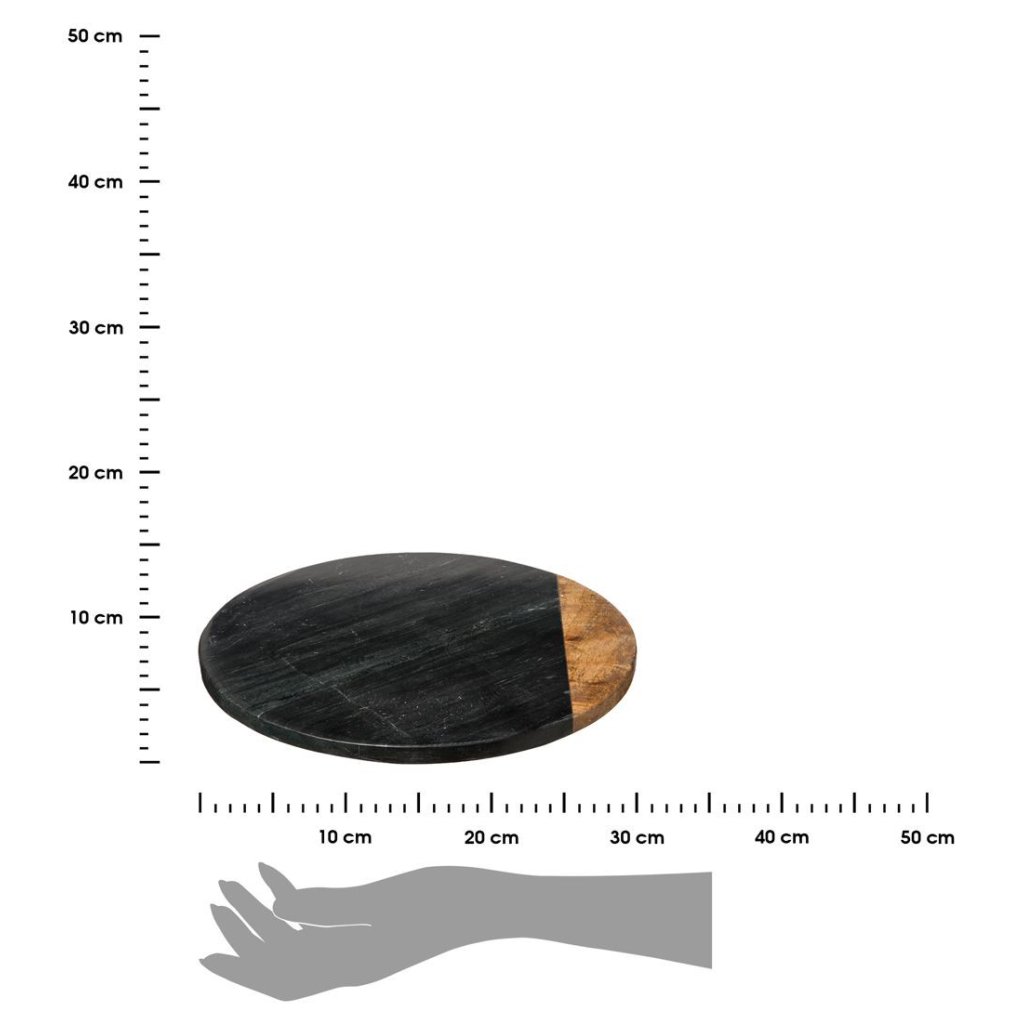 Podnos o průměru 30 cm a výšce 4 cm vám umožní umístit spoustu občerstvení a nápojů a možnost otáčení vám jistě usnadní dosahování pochoutek. Černý, mramorový styl podnosu s dřevěným zdobením upoutá pozornost mnoha lidí! Ideální pro podávání různých předkrmů, sýrů, ovoce, uzenin a jiných pochutin. Hladký povrch usnadňuje udržování podnosu v čistotě. Nepoužívejte v mikrovlnné troubě ani v myčce nádobí.Doplňkové parametry