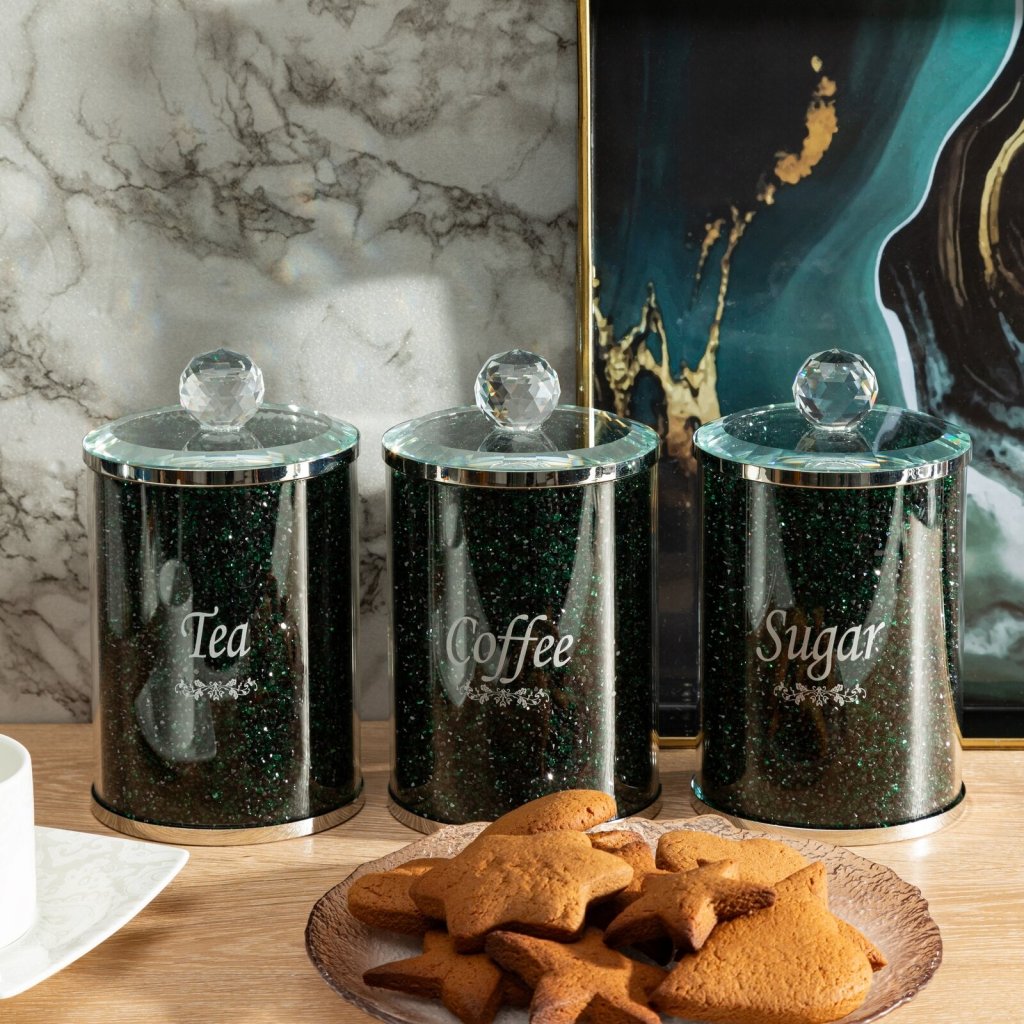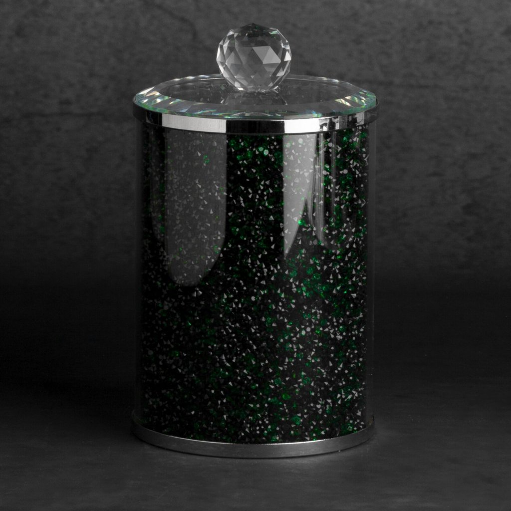 NÁDOBA S KŘISTÁLKY 10X10X17 CM ZELENÁ