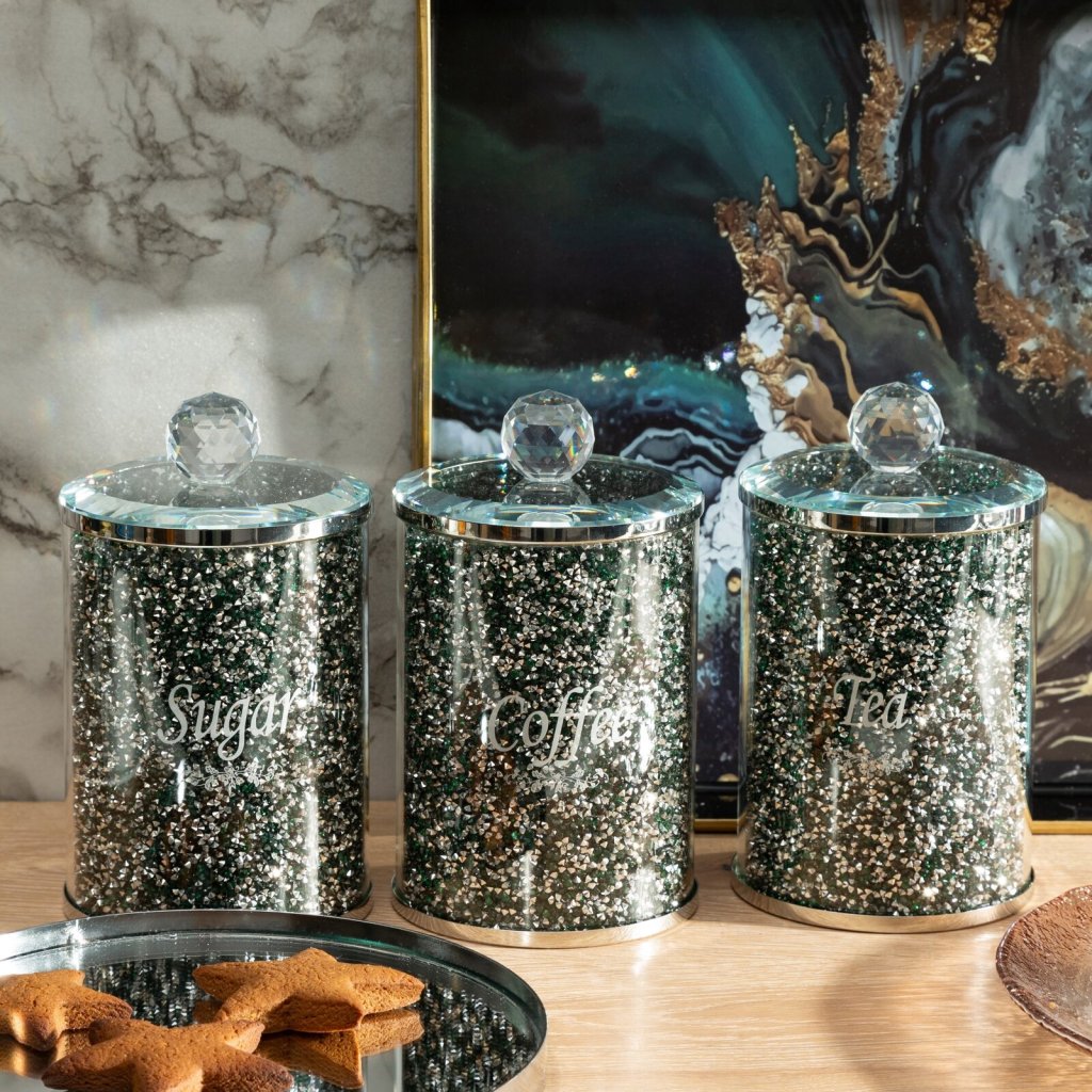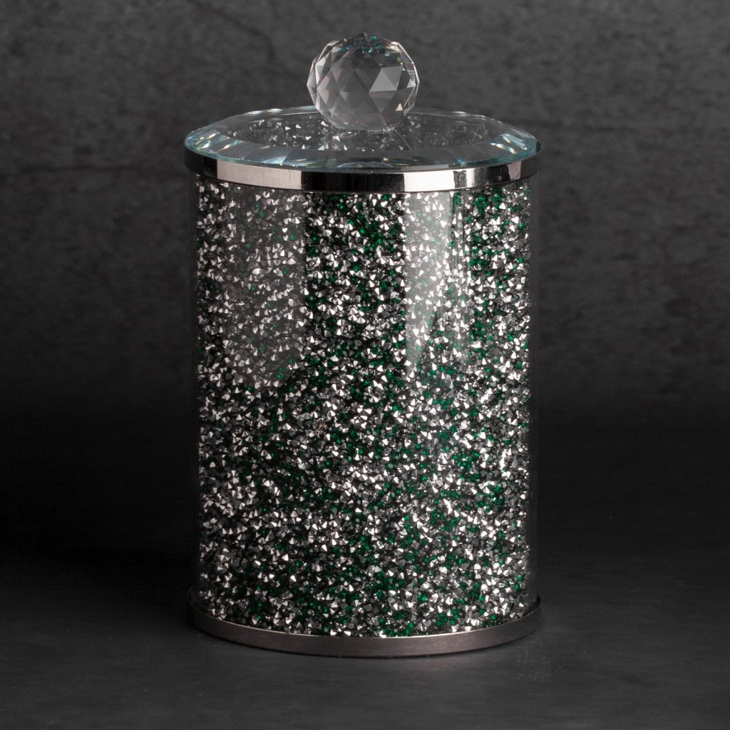 NÁDOBA S KŘISTÁLKY 10X10X17 CM ZELENÁ