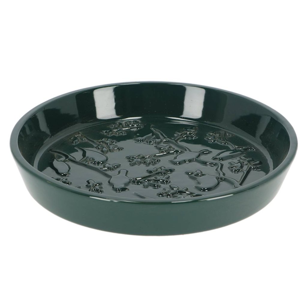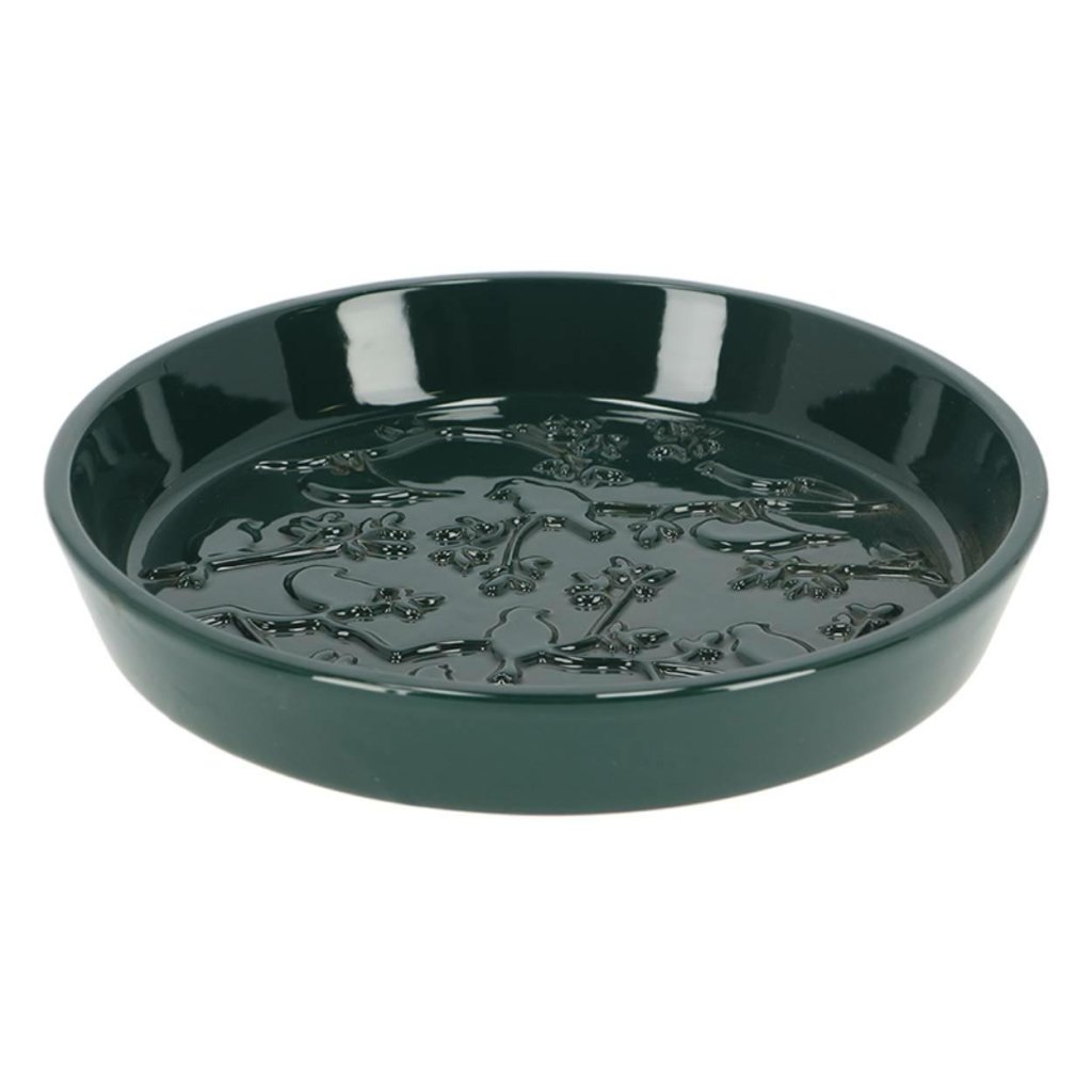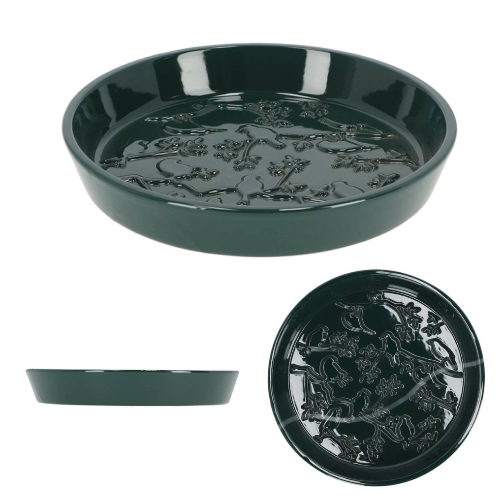 Napajedlo pro ptáky Keith v zelené barvě je stylová zahradní mísa , která slouží jako napajedlo, koupel nebo krmítko. Je vyrobena z keramického materiálu s hladkým povrchem , který se snadno čistí a zároveň působí dekorativně. Rozměr 4,8 × 28,5 cm je ideální pro umístění na trávník, terasu nebo mezi záhony. Dno mísy zdobí jemné reliéfní zdobení s motivem ptáčků a větviček , které jí dodává přirozený a vkusný vzhled. Miska je navržena tak, aby podporovala zahradní ptactvo při pití, krmení i čištění peří – a to vše s důrazem na estetiku. Tento funkční a dekorativní doplněk se skvěle hodí do viditelného místa v zahradě, kde poslouží jako praktický prvek i jako elegantní ozdoba.Doplňkové parametry