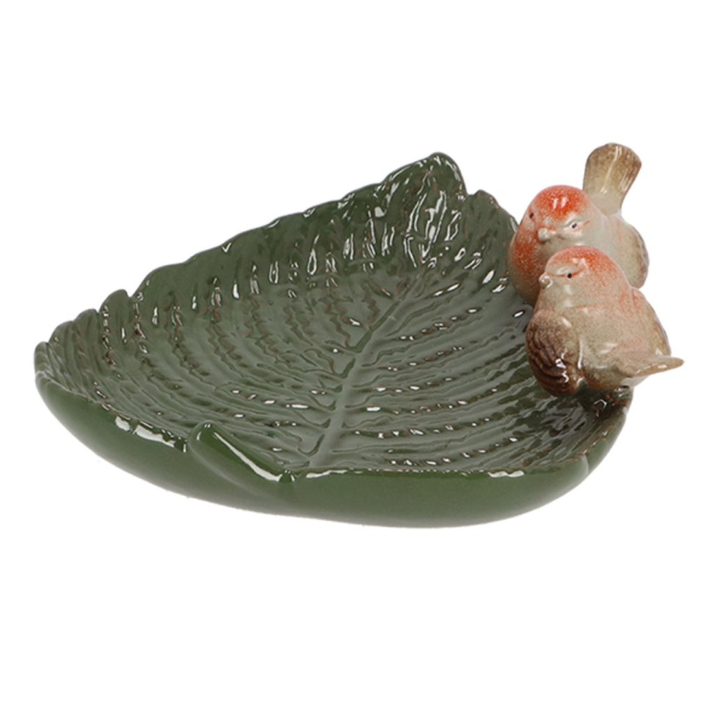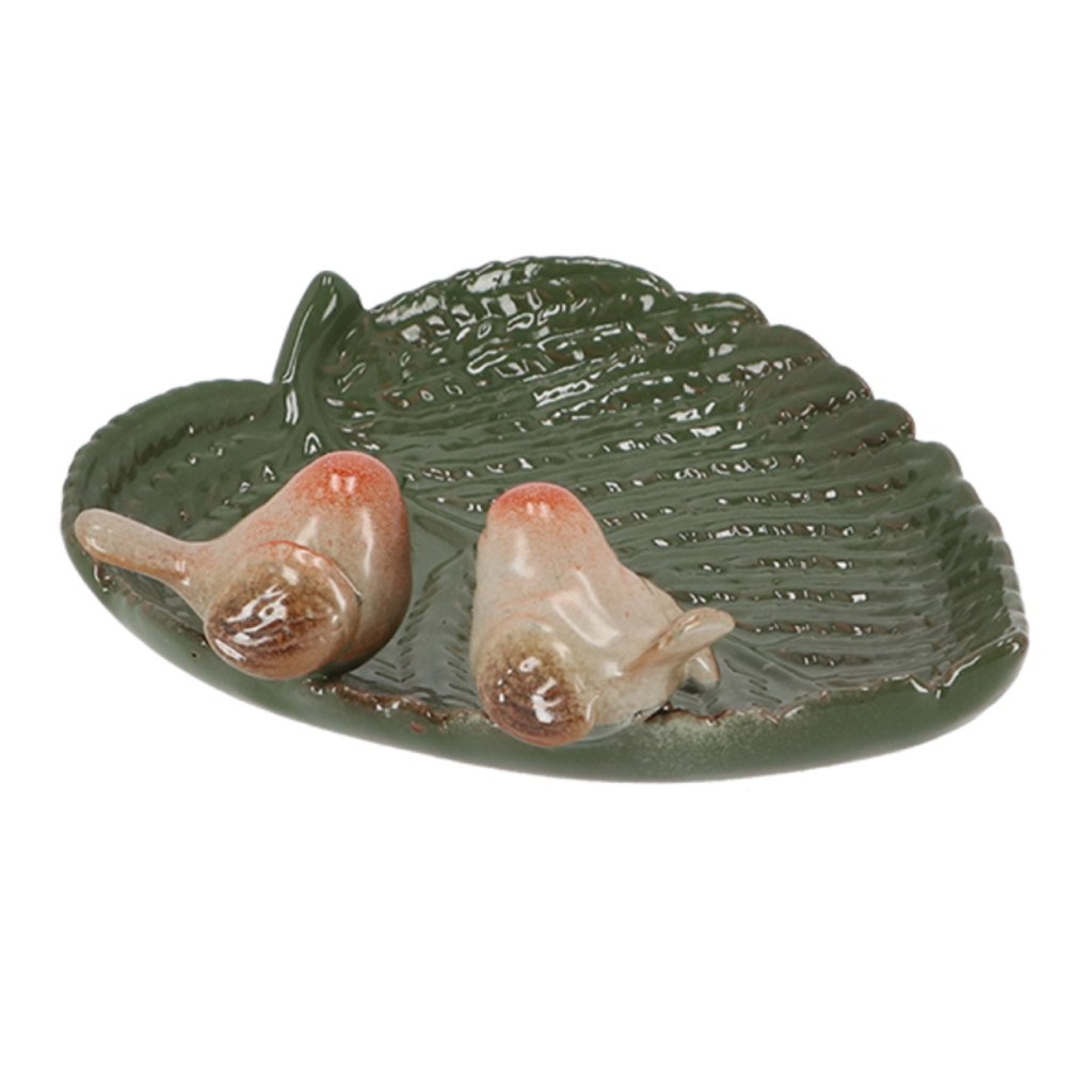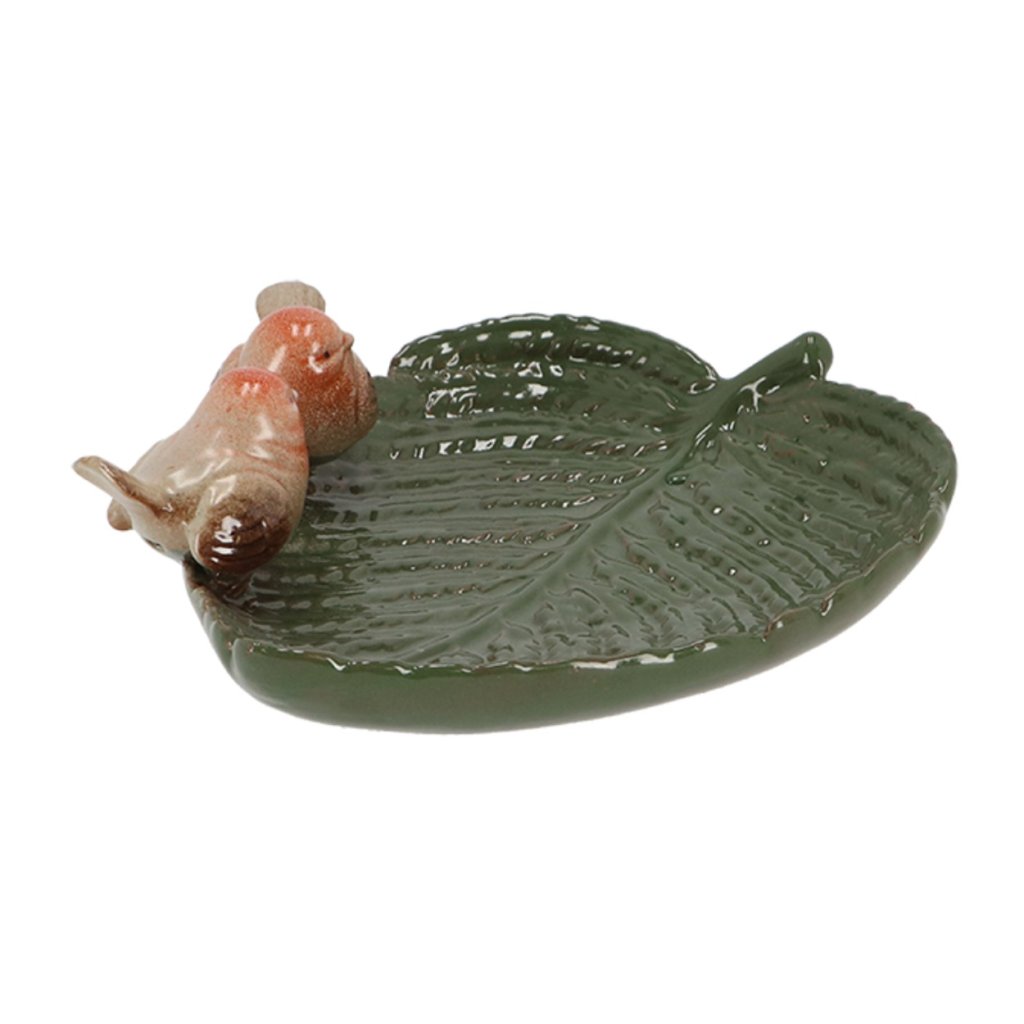 Napajedlo pro ptáky Leaf, 19x21 cm, keramika, zelená