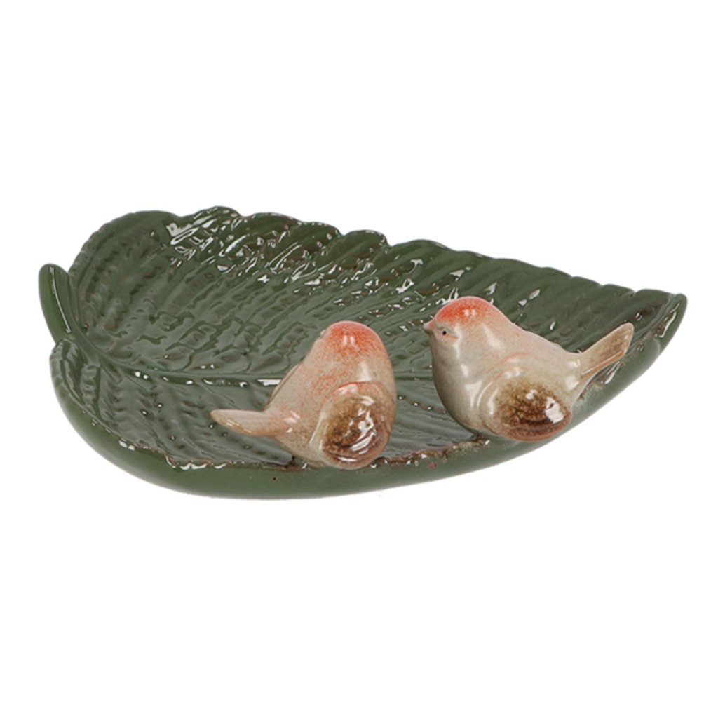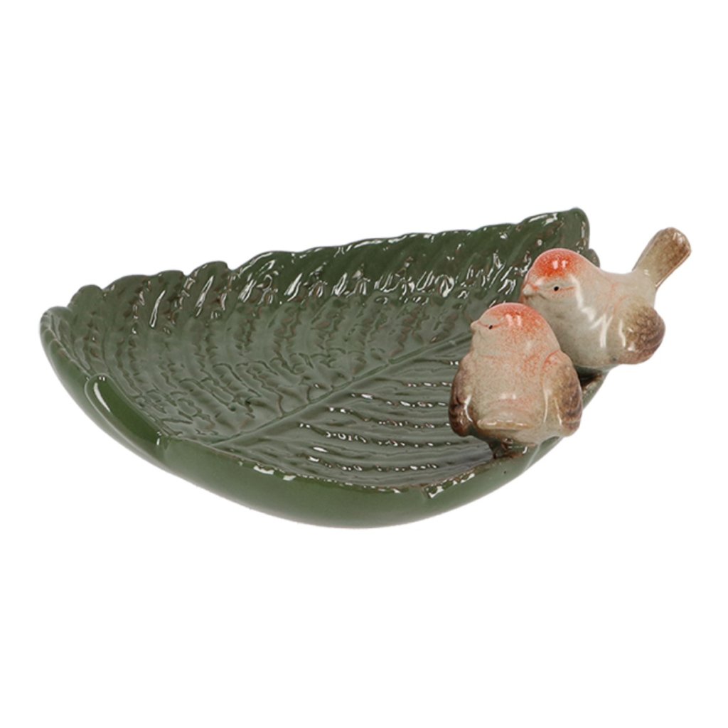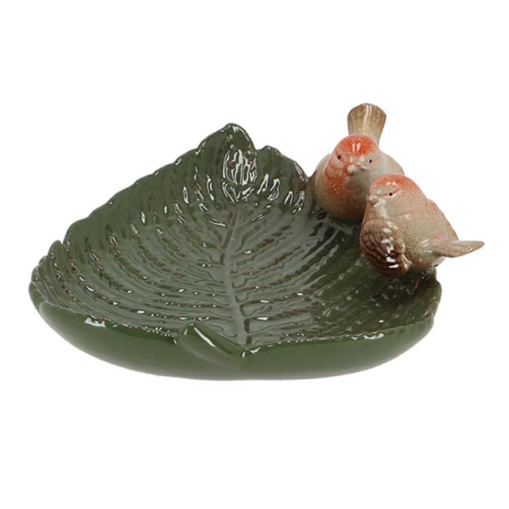 Napajedlo pro ptáky Leaf, 19x21 cm, keramika, zelená
