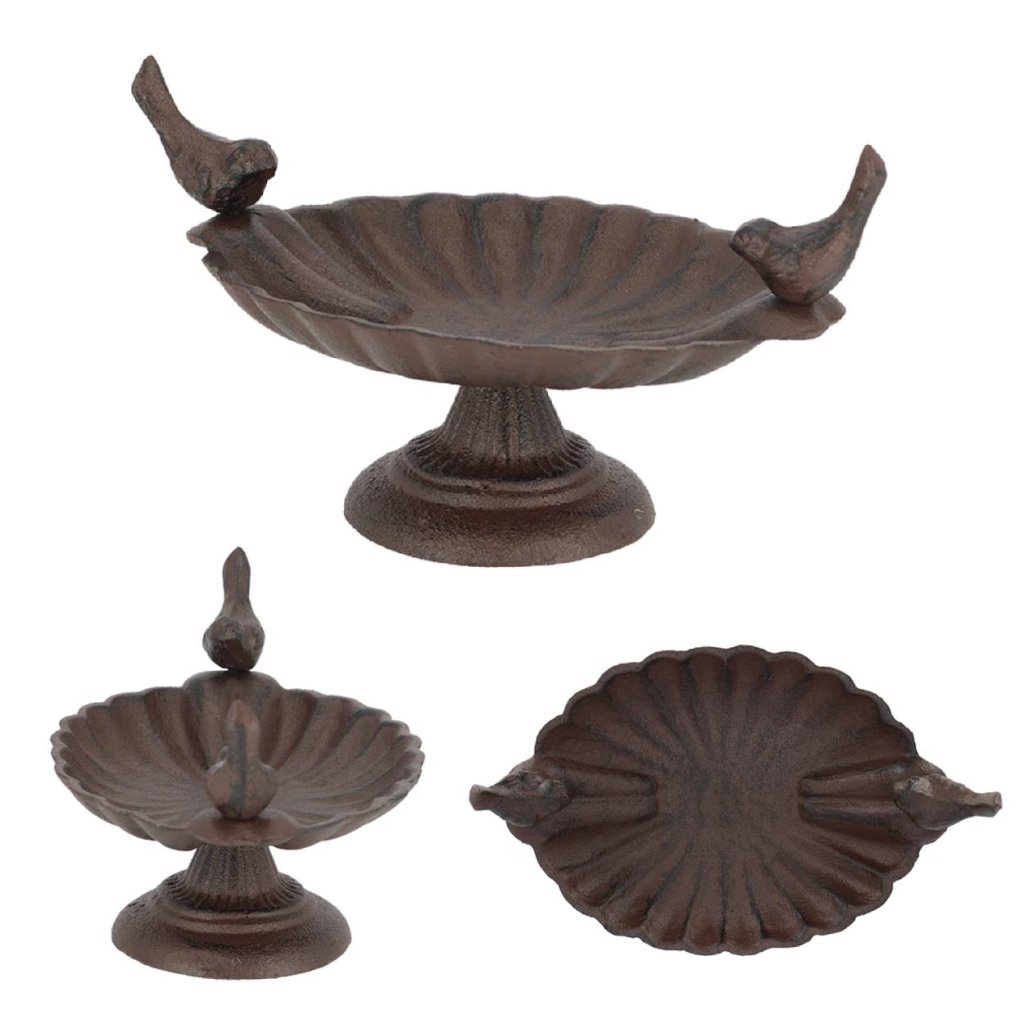 Napajedlo pro ptáky na noze Livia, 13,1x19,9 cm, litina, hnědá