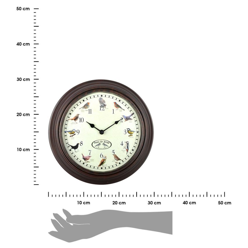 Hledáte-li originální dárek pro milovníka přírody, tyto hodiny jsou právě pro vás. Hodiny se zvuky ptáků se vyznačují kvalitou a nadčasovým designem. Hodiny byly navrženy tak, aby každou hodinu zahráli jiný zvuk, volání daného ptáka. Uslyšíte 12 různých zvuků ptáků, jako jsou: pěnkava, kukačka, sýkorka velká, datel, drozd, sova pálená, vřesovec, drozd černý, sýkora modrá, slavík, červínka, sova obyčejná.Od 22:00 do 05:00 hodin nevydávají žádné zvuky. Hodiny jsou určeny pro vnitřní i venkovní použití, na terasu nebo balkon.