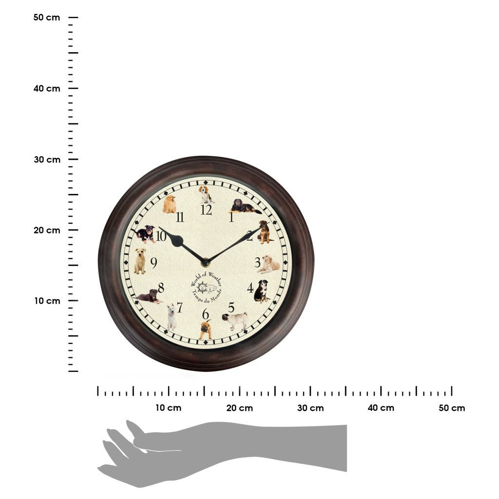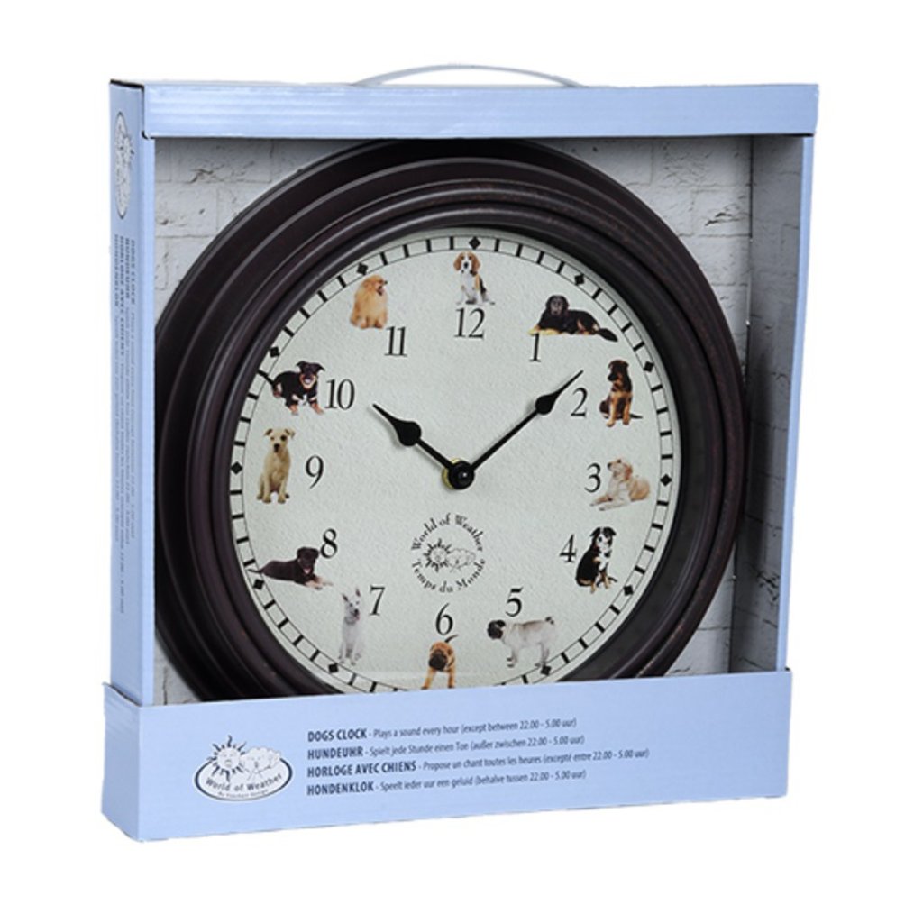 Hledáte-li originální dárek pro milovníka přírody, tyto hodiny jsou právě pro vás. Hodiny se vyznačují kvalitou a nadčasovým designem. Hodiny byly navrženy tak, aby každou hodinu zahráli zvuk psa. Díky velkému ciferníku s přehlednými číslicemi jsou hodiny velmi dobře čitelné. Na ciferníku jsou u číslů ilustrace a fotografie 12 pejsků, které udělají velkou radost milovníkům zvířátek. Každou hodinu zazní roztomilý psí zvuk „woof“.Od 22:00 do 05:00 hodin nevydávají žádné zvuky.