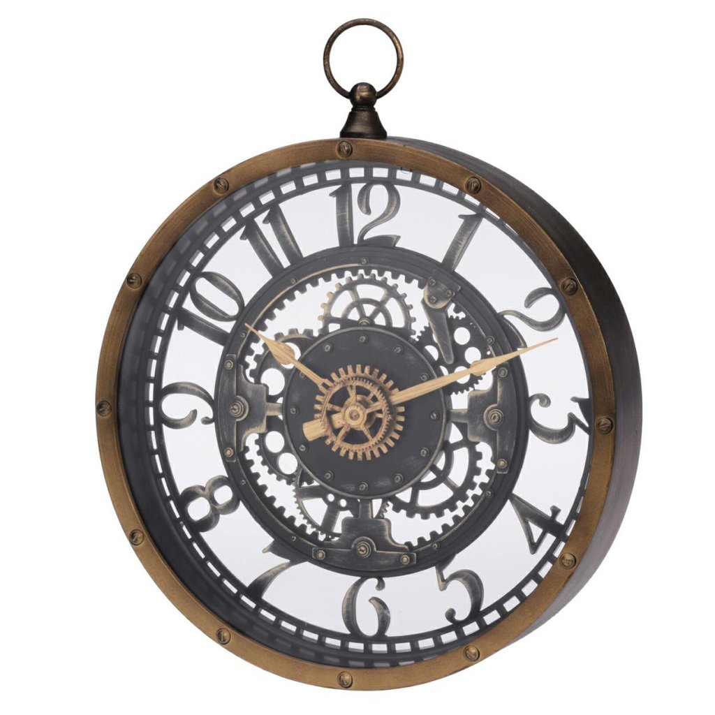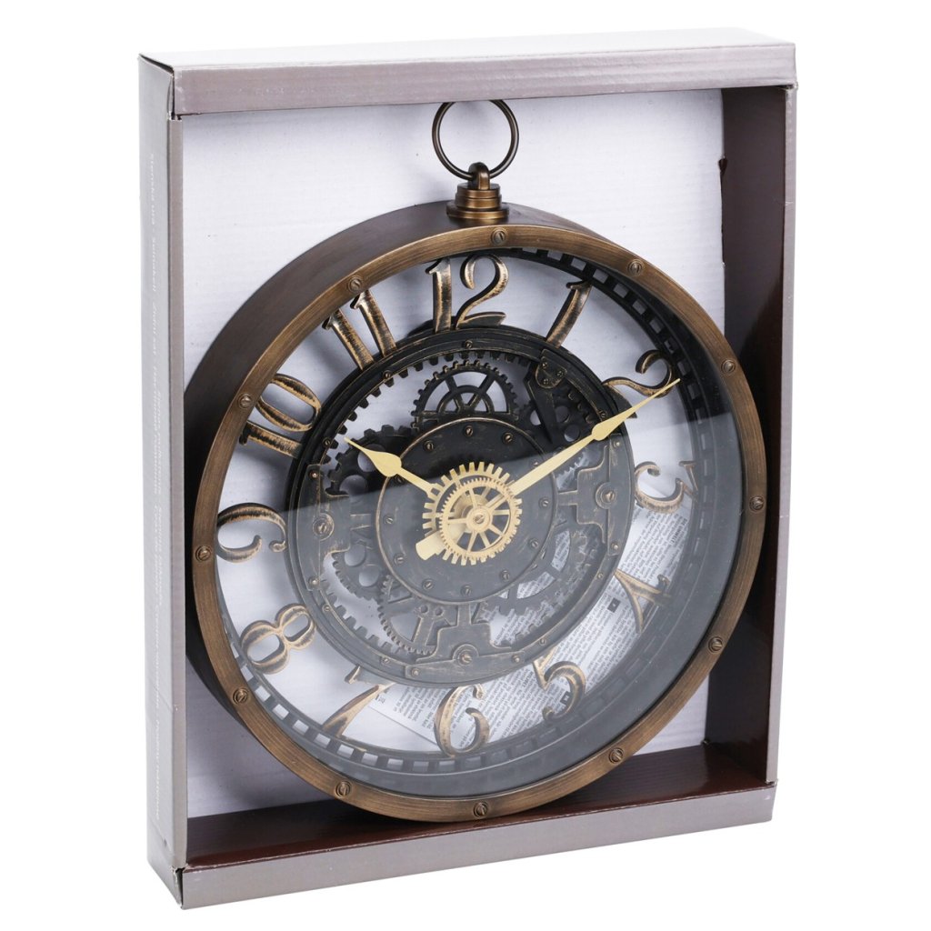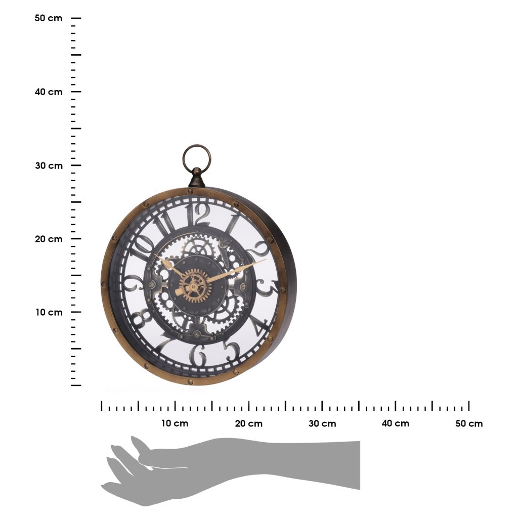 Kulaté nástěnné hodiny v industriálním stylu. Krásný, praktický a nezbytný doplněk do každé domácnosti. Vyznačují se skleněným vnitřkem, na kterém je zobrazen celý mechanismus hodin. Ručičky a čísla jsou vyrobeny v retro stylu. Rám hodin je hnědé barvy a dokonale se hodí k tmavšímu středu. Hodiny mají kulatou rukojeť, která umožňuje jejich zavěšení. Výrobek je vyroben z odolného plastu s důrazem na nejmenší detaily. Můžeme si být jisti, že svou funkci bude plnit dlouhá léta. Hodiny se skvěle hodí do interiérů zařízených v loftovém či industriálním stylu, ale také do klasických a retro. Může to být jedinečný a originální dárek pro milovanou osobu.Doplňkové parametry