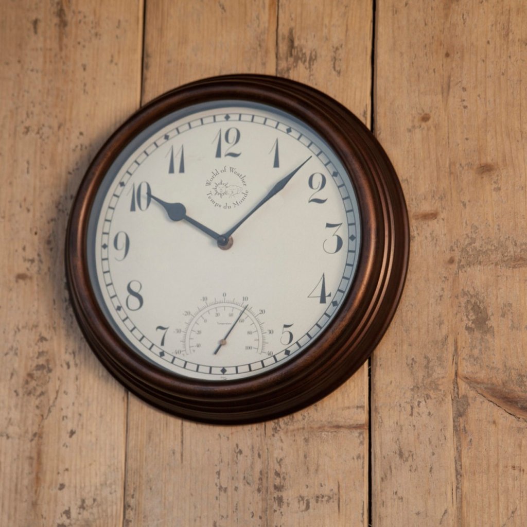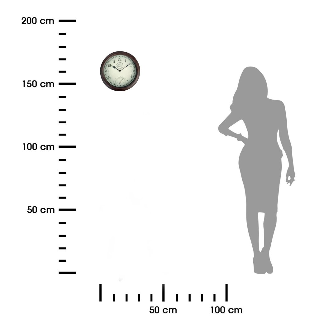 Kulaté tradiční hodiny, které jsou nejen praktickým, ale také dekorativním doplňkem vašeho okolí. Hodiny jsou vyrobeny v klasickém stylu s nádechem retra. Hnědý rám, krémový ciferník a černé ručičky a číslice vytvářejí harmonii stylu a elegance. Hodiny kromě běžného měření času ukazují také aktuální teplotu.Doplňkové parametry