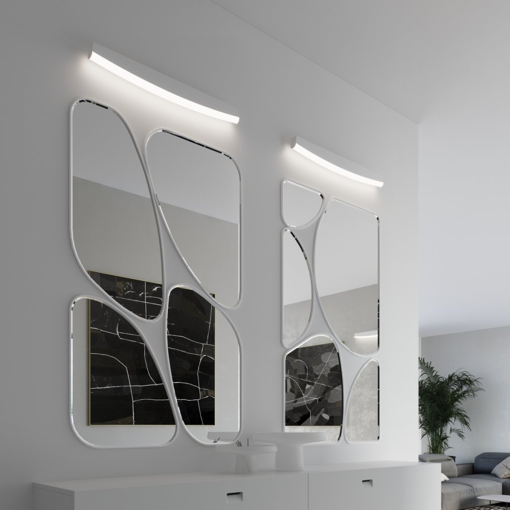 Moderní svítidlo LED, které je dokonalým příkladem elegantního a minimalistického designu. LED pásek je uzavřen v tenkém kovovém panelu, který se táhne podél obloukové linie, což mu dodává zajímavý, dynamický tvar. Tento typ svítidla je vhodný nejen jako samostatný designový prvek, ale také jako součást větších kompozic, takže je ideální jako dekorativní osvětlení pro obytné i komerční prostory, jako jsou restaurace, hotely nebo nákupní galerie.Doplňkové parametry