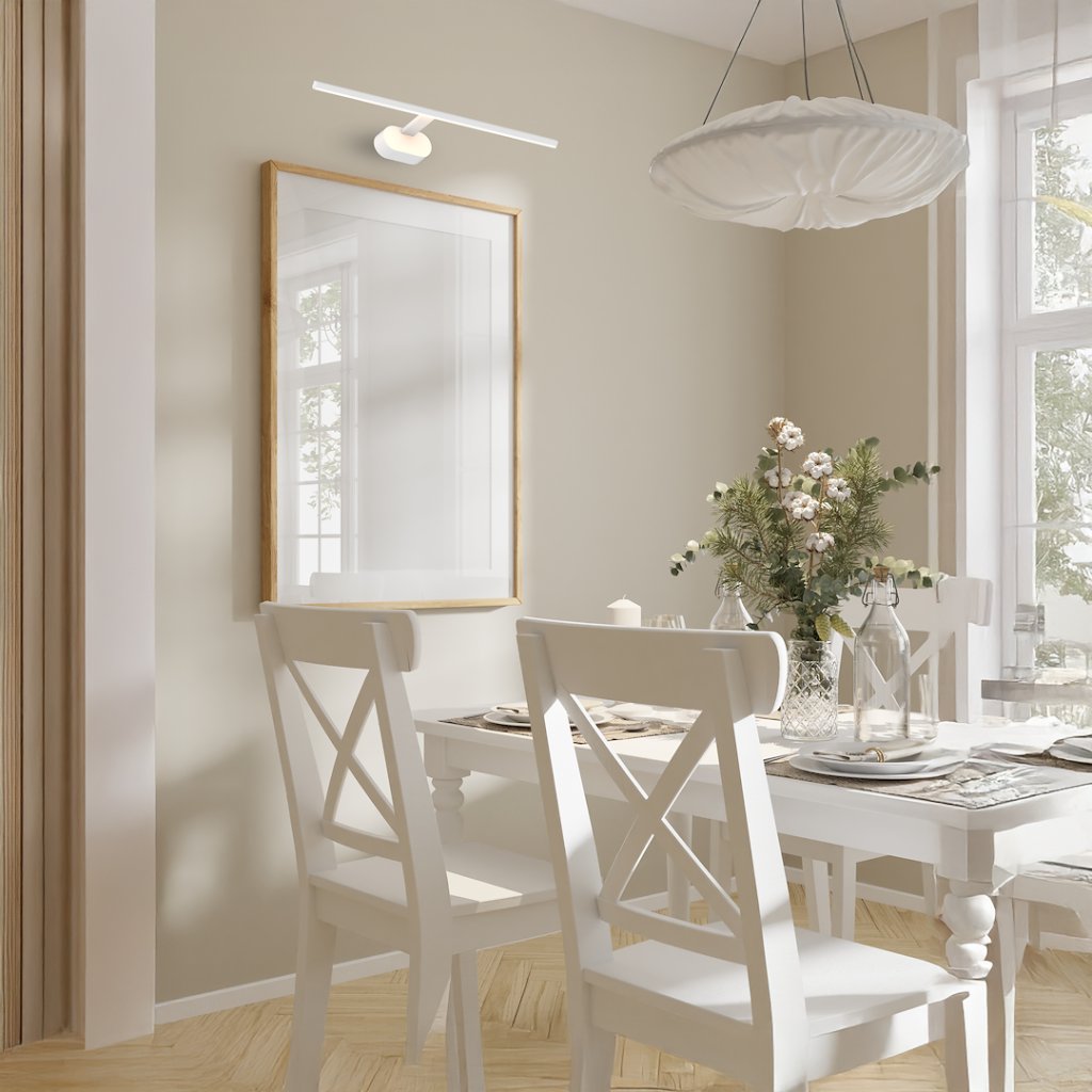 Díky širokému úhlu svícení je svítidlo výbornou volbou jako osvětlení obrazů, zrcadel nebo polic . Vestavěné LED osvětlení s teplotou 3000K vytváří jemné, příjemné světlo, které pomáhá vytvořit relaxační a elegantní atmosféru .