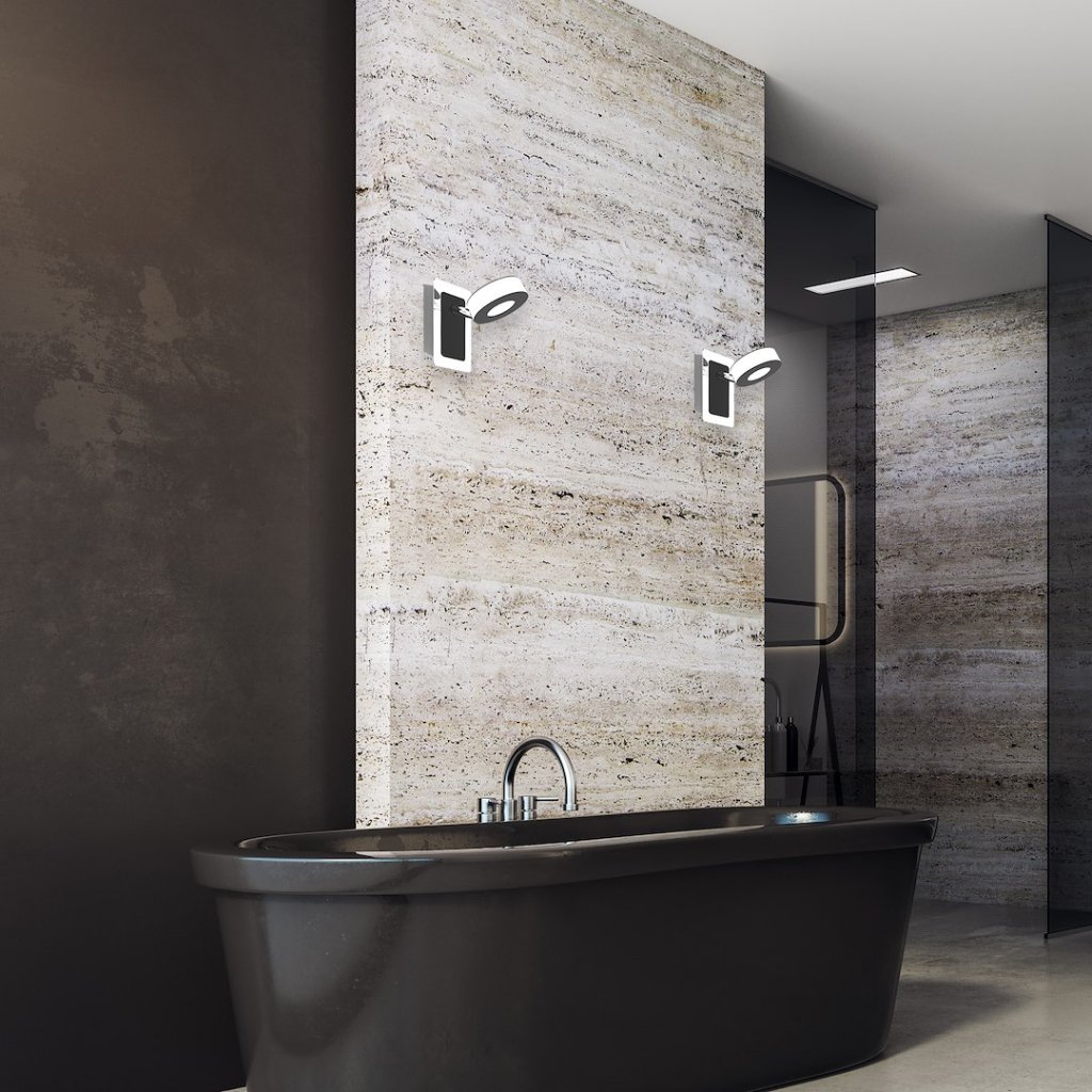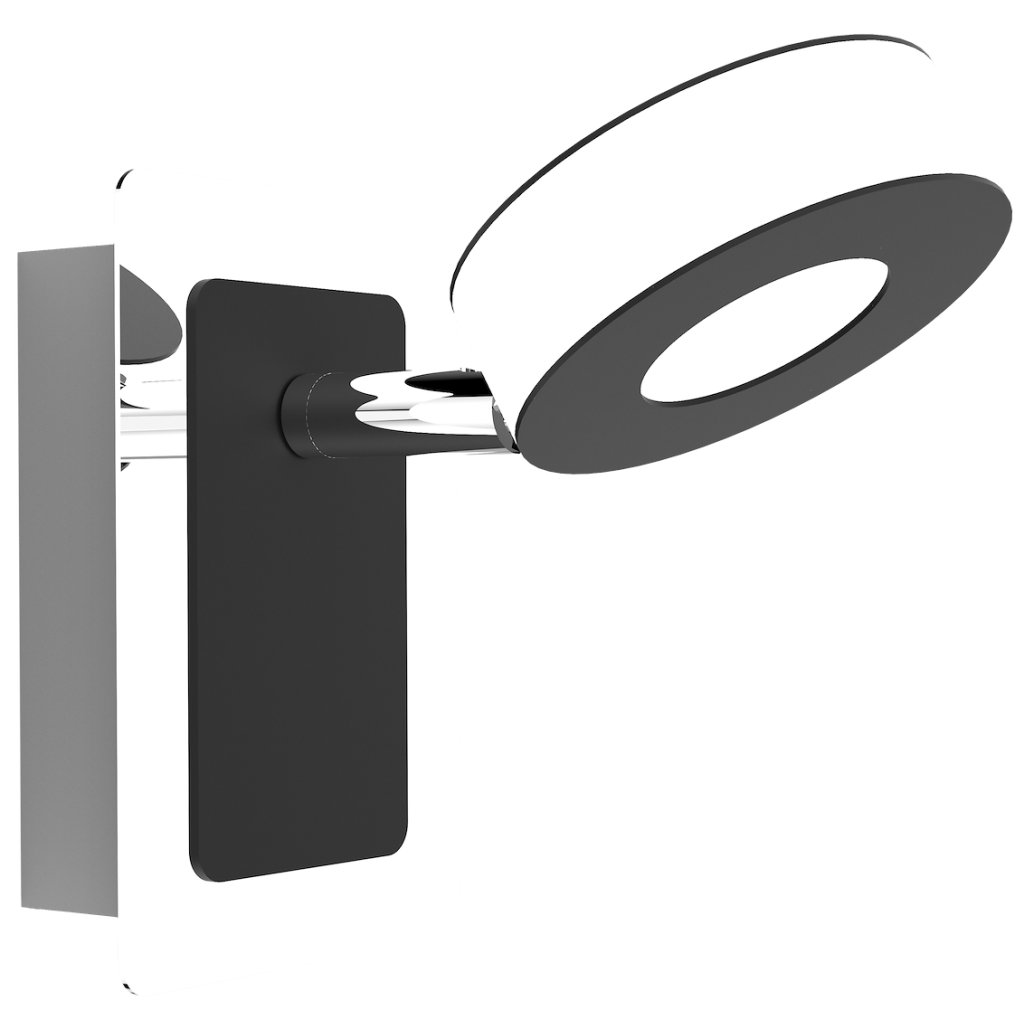Moderní nástěnná LED svítilna z kolekce Sole zaujme geometrickým designem a kombinací chromu, bílé a černé barvy . Díky svému minimalistickému a zároveň originálnímu vzhledu je ideálním řešením pro interiéry, kde je kladen důraz na čisté linie a vizuální harmonii.