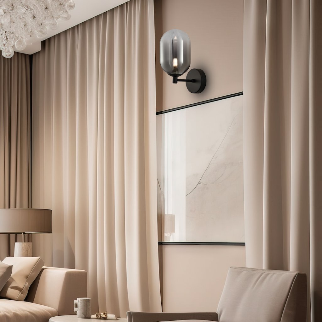 Konstrukce z černého kovu v kombinaci s kouřovým sklem působí sofistikovaně a harmonicky zapadá do interiérů s bílými stěnami, zlatými doplňky nebo přírodními materiály. Černé svítidlo s grafitovým stínítkem je ideální volbou nad kuchyňský ostrůvek, do předsíně nebo jako doplňkové osvětlení do obývacího pokoje či ložnice.