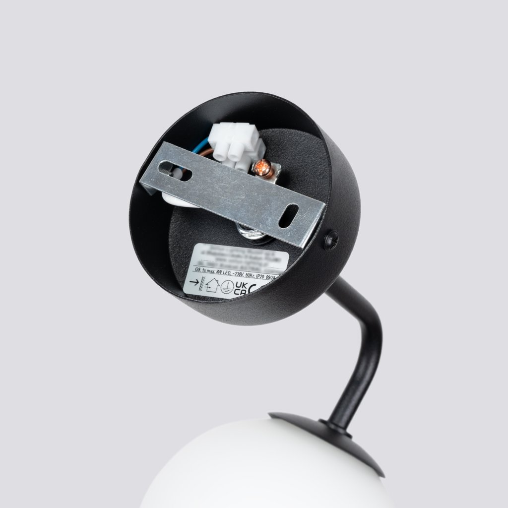Nástěnné svítidlo ASTRAL s bílým skleněným stínidlem představuje moderní a elegantní způsob osvětlení, který vyniká minimalistickým designem a nadčasovou estetikou. Jednoduchá černá kovová konstrukce v kombinaci s matným sklem vytváří jemný kontrast a dodává interiéru stylový a zároveň harmonický výraz. Díky svému univerzálnímu vzhledu se svítidlo dokonale hodí do moderních i klasických prostor.