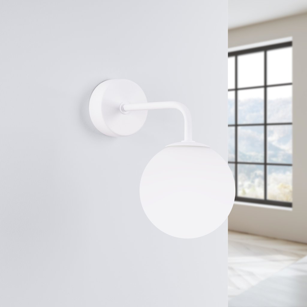 Nástěnné svítidlo ASTRAL s bílým skleněným stínidlem je elegantní řešení osvětlení, které v sobě spojuje moderní design a jemnou jednoduchost. Jeho kovová konstrukce v bílé barvě působí čistě a minimalisticky, zatímco matné kulovité stínidlo dodává svítidlu sofistikovaný charakter. Tento model se bude vyjímat v moderních i klasických interiérech, kam vnese pocit harmonie a estetiky.