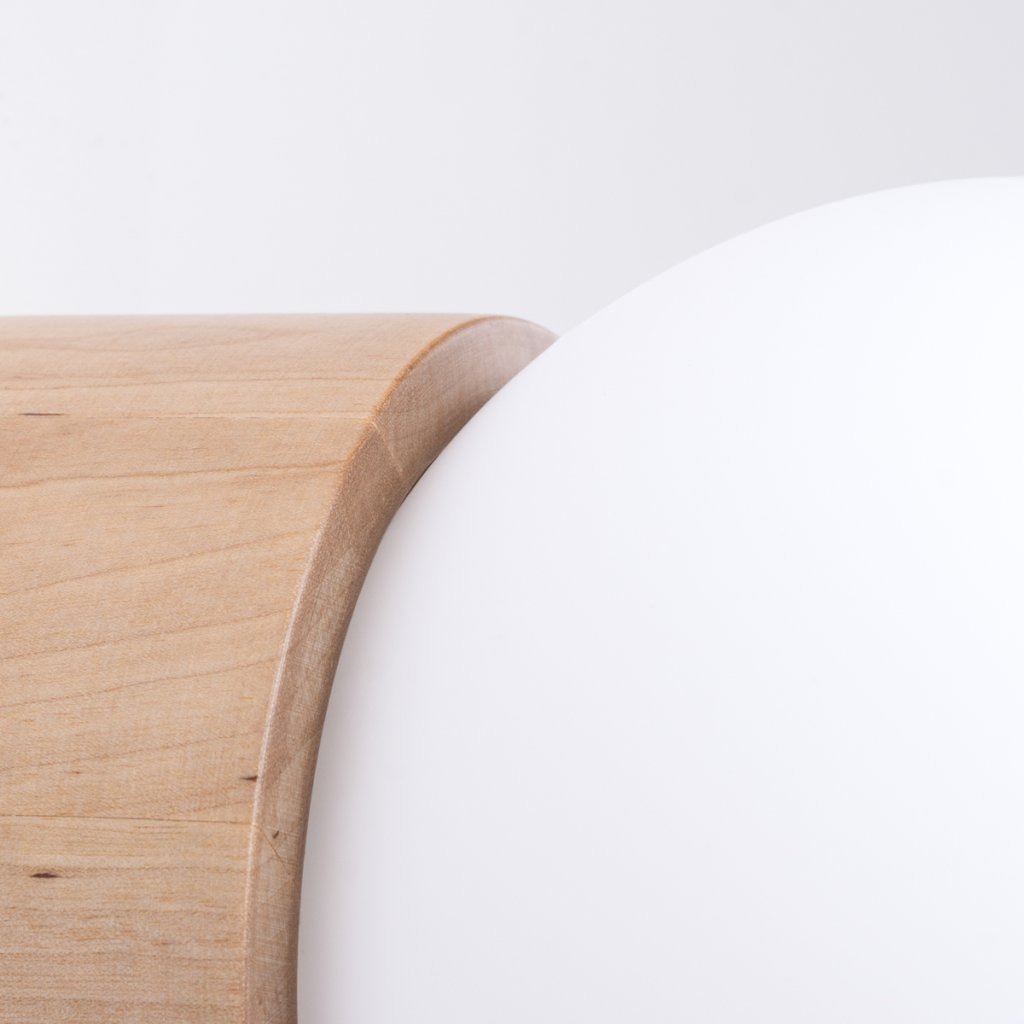 Nástěnné svítidlo Boomo, 1x bílé skleněné stínítko, dřevo