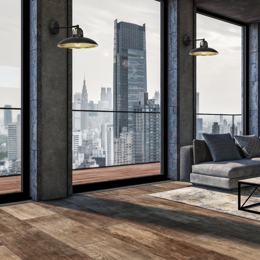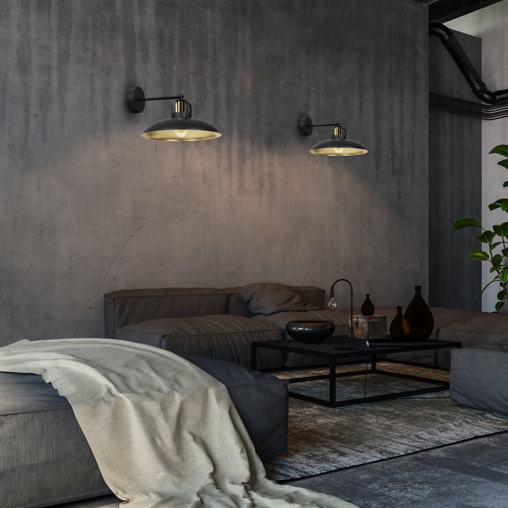 Nástěnné svítidlo z kolekce Felix v kombinaci zlatého a černého kovového stínítka představuje stylové propojení industriální estetiky a elegantního designu. Jeho charakteristický tvar navazuje na typické industriální osvětlení, ale zlaté detaily dodávají celku jemnost a vizuální noblesu.
