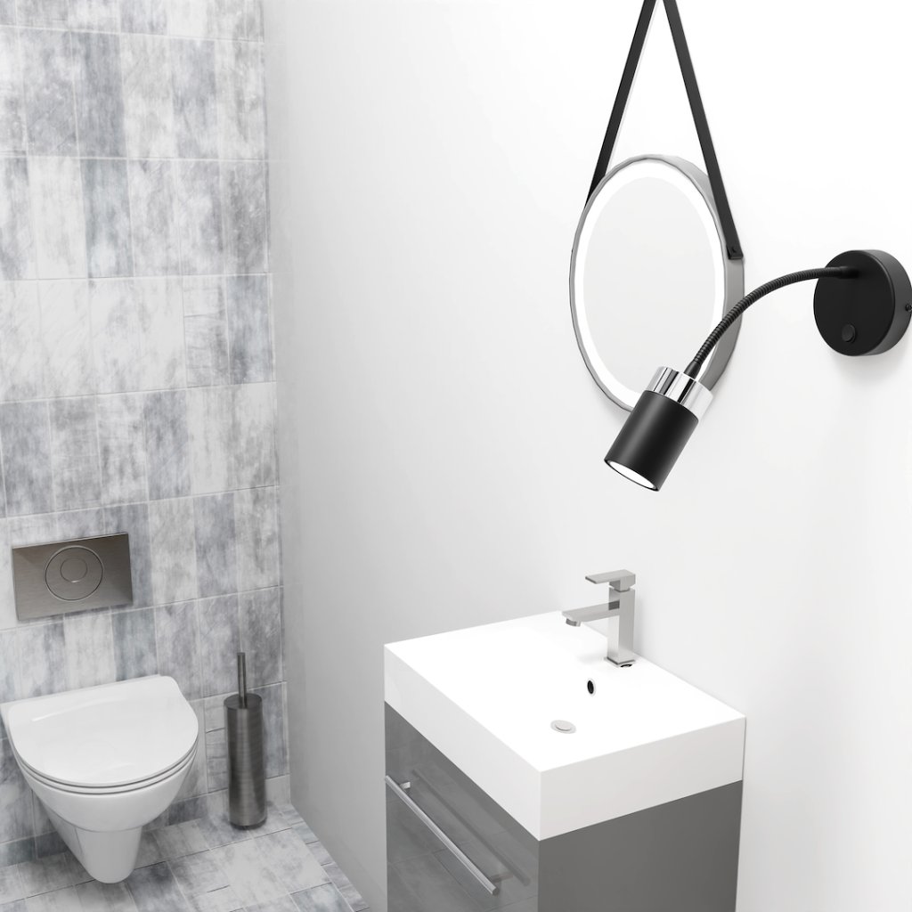 Nástěnné svítidlo Joker s černým kovovým stínítkem a chromovými detaily je moderním řešením, které nahrazuje klasické noční lampy. Díky pohyblivému ramenu si můžete jednoduše nasměrovat světlo přesně tam, kde jej potřebujete – ideální například pro čtení před spaním.