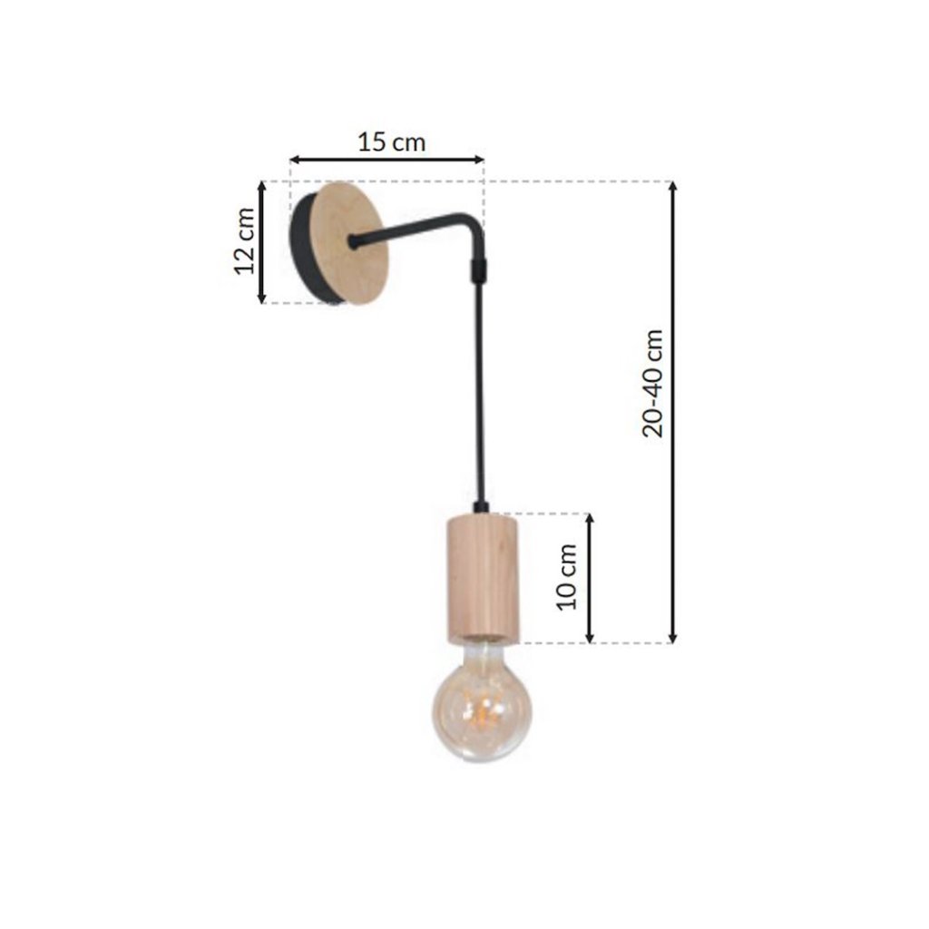 Nástěnné svítidlo Lines 1 s dřevěným tělem a černými kovovými detaily představuje kombinaci loftové surovosti a minimalistické elegance . Otevřený design bez stínítka nechává vyniknout použité žárovce a dodává prostoru autentický industriální výraz.