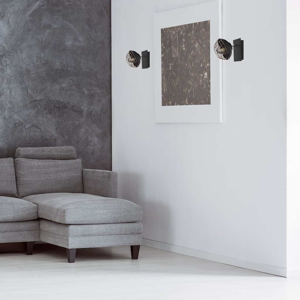 Stylové nástěnné svítidlo s kombinací černého kovového rámu a zlatého drátěného stínítka zaujme na první pohled svým netradičním vzhledem připomínajícím dekorativní ventilátor . Díky elegantnímu kontrastu mezi matnou černou a teplým zlatým odstínem působí svítidlo moderně a zároveň výjimečně sofistikovaně.