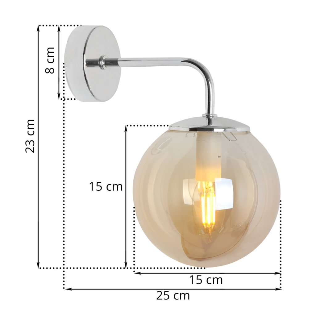 Nástěnné svítidlo Paris 2, 1x medové skleněné stínítko, CH