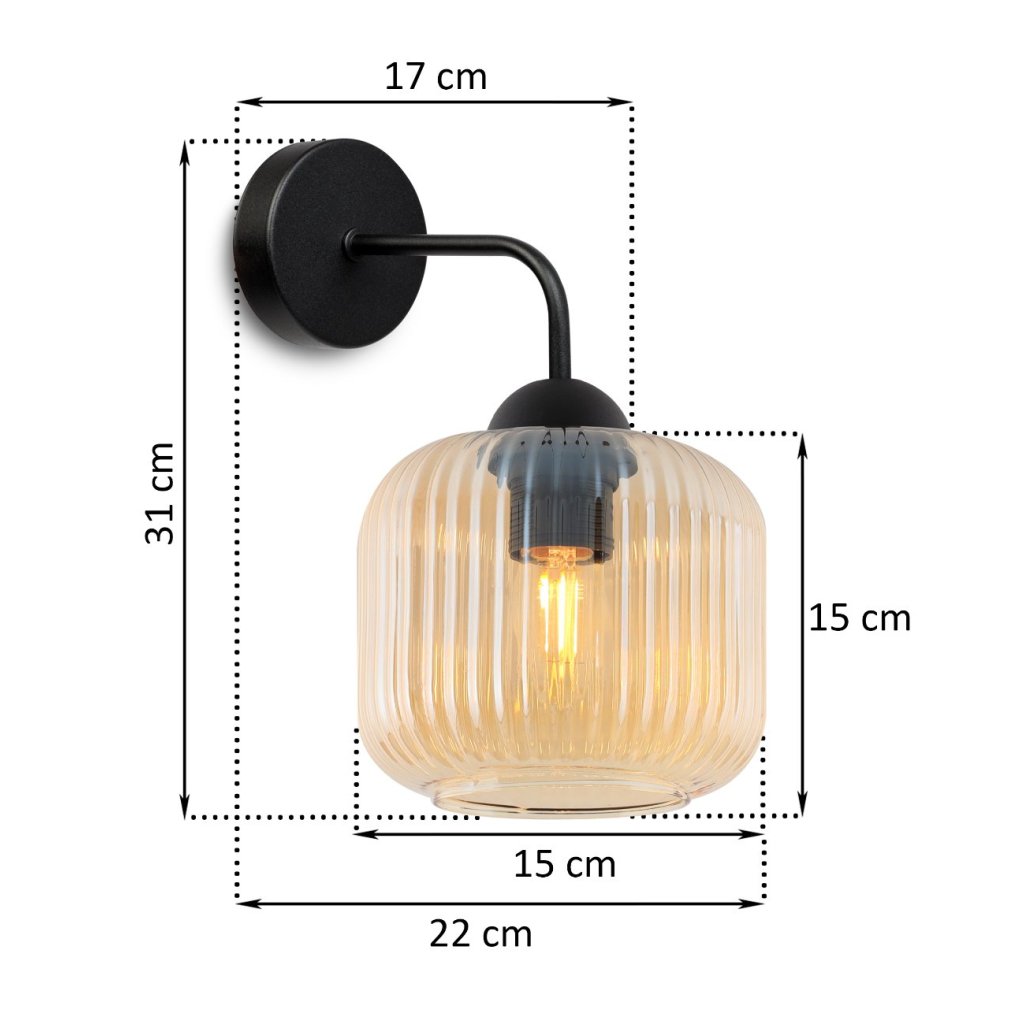 Nástěnné svítidlo Riffle, 1x medové skleněné stínítko