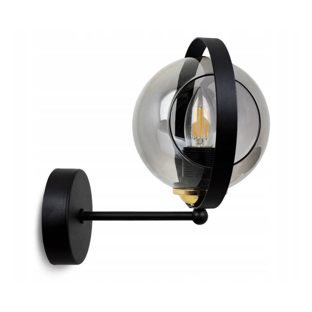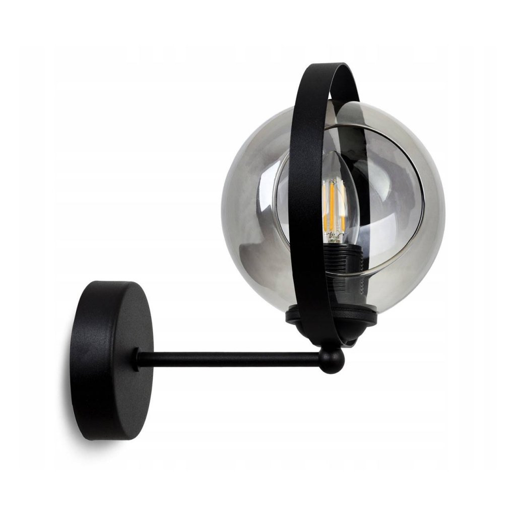 Nástěnné svítidlo Ring, 1x grafitové skleněné stínítko, (výběr ze 3 barev uchycení)