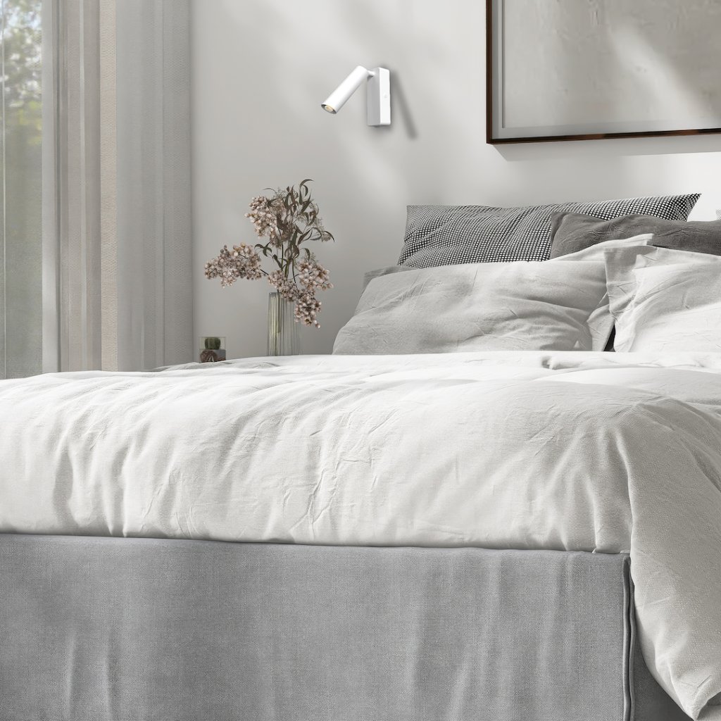 Nástěnné svítidlo z kolekce Santi s bílým kovovým stínítkem je ideálním řešením pro vytvoření útulného a zároveň moderního osvětlení v ložnici. Jeho čistý design a jemné linie vnášejí do prostoru pocit harmonie a vizuální čistoty.