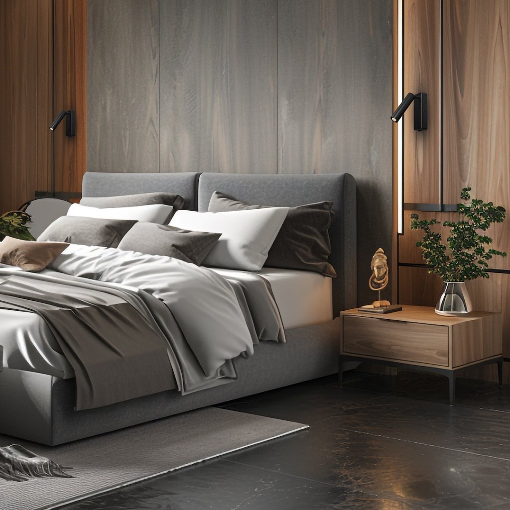 Nástěnné svítidlo z kolekce Santi s černým kovovým stínítkem je ideální volbou pro ložnici, kde chcete vytvořit útulné a zároveň výrazně stylové prostředí. Minimalistický design svítidla se vyznačuje čistými liniemi a decentní formou, která zapadne do různých typů interiérů.