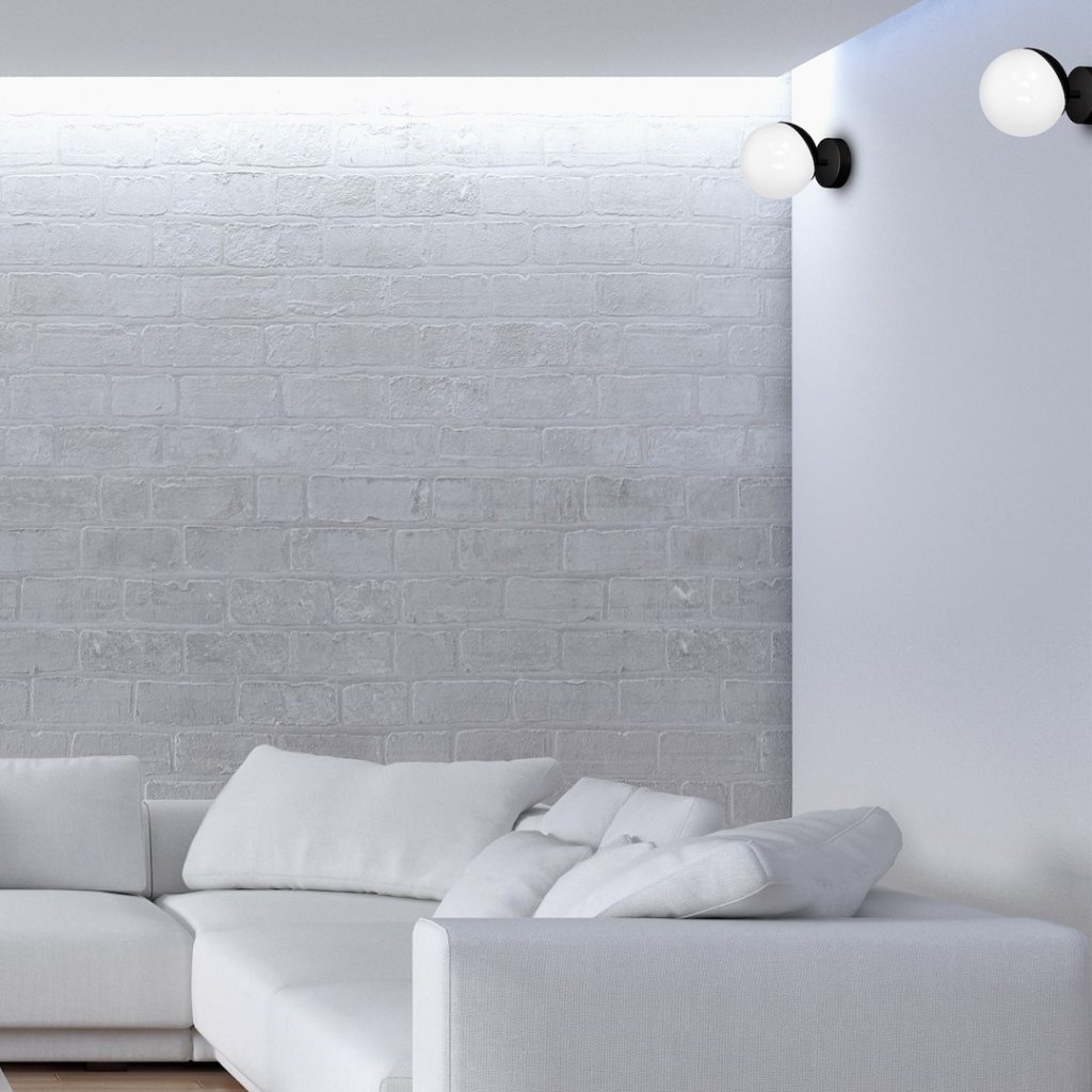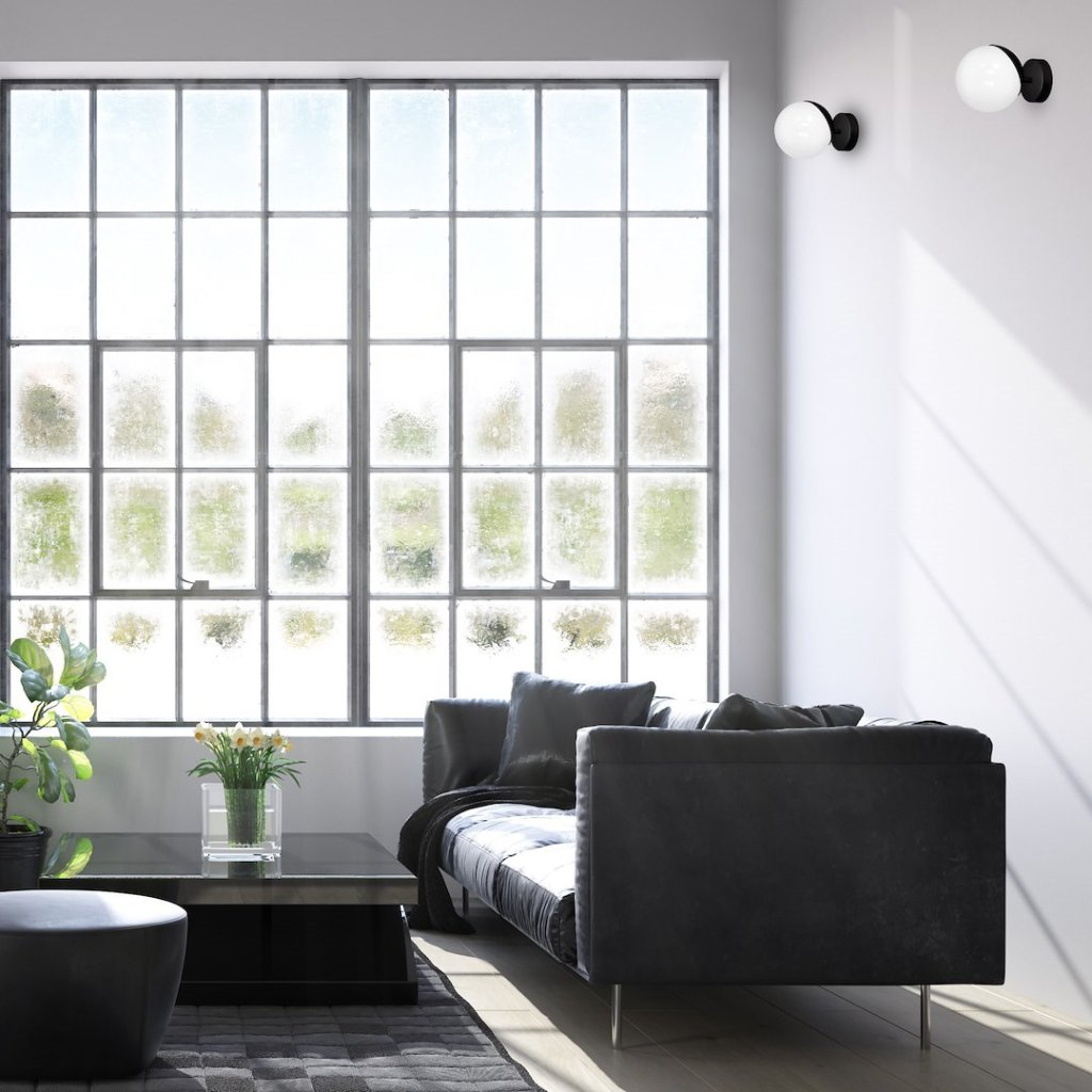 Nástěnné svítidlo Sfera s bílým skleněným stínítkem a černou konstrukcí spojuje minimalismus s nadčasovou elegancí . Kulovitý tvar stínítka působí jemně a moderně zároveň, díky čemuž je tento model ideálním doplňkem do interiérů různého stylu – od klasických až po současné a skandinávské.