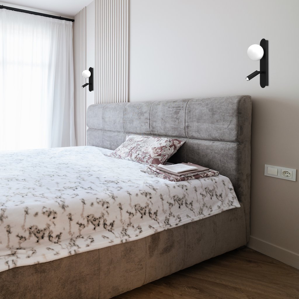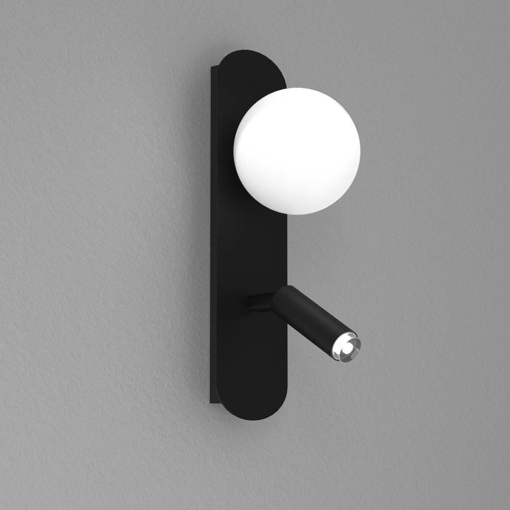 Nástěnné svítidlo Sirio, 1x bílé skleněné stínítko + 1x černé kovové stínítko, b