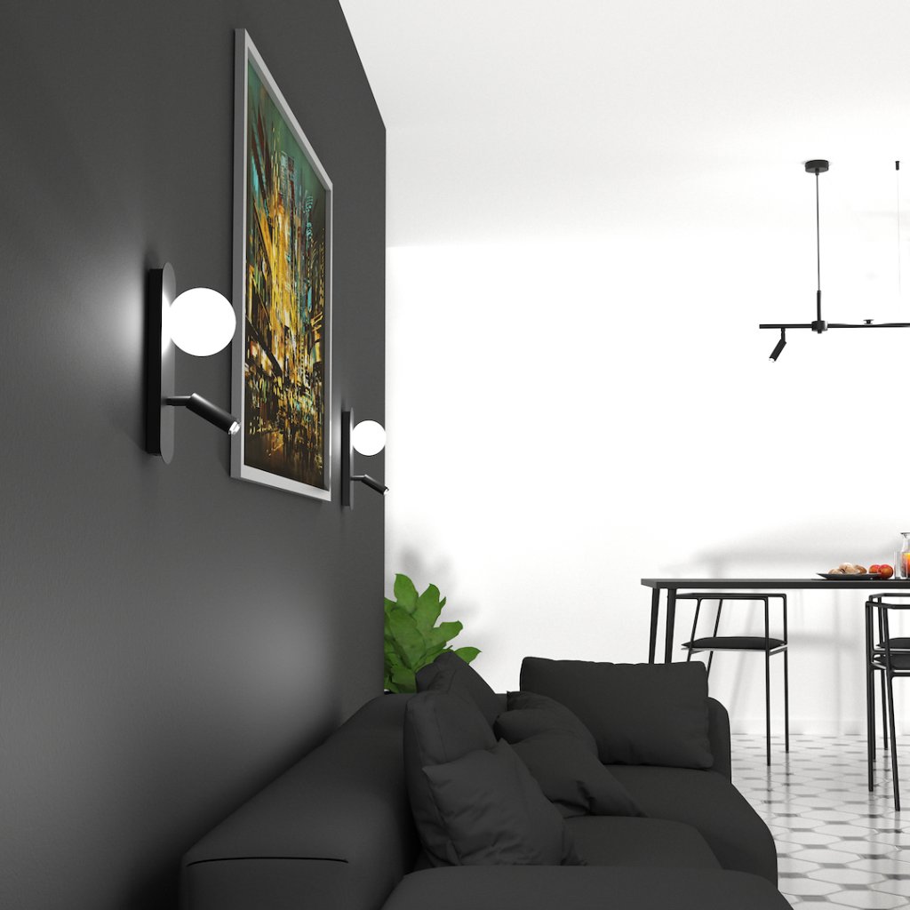 Nástěnné svítidlo Sirio zaujme svojí minimalistickou konstrukcí a kontrastním provedením v kombinaci bílého skleněného stínítka a černého kovového prvku . Díky svému nadčasovému vzhledu se hodí do různých typů interiérů, od moderních až po industriálně laděné prostory.