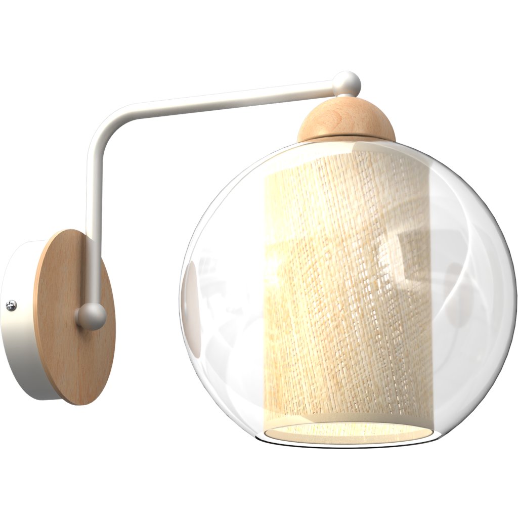 Nástěnné svítidlo Těla, 1x ratanové/transaprentní skleněné stínítko, w/dřevo