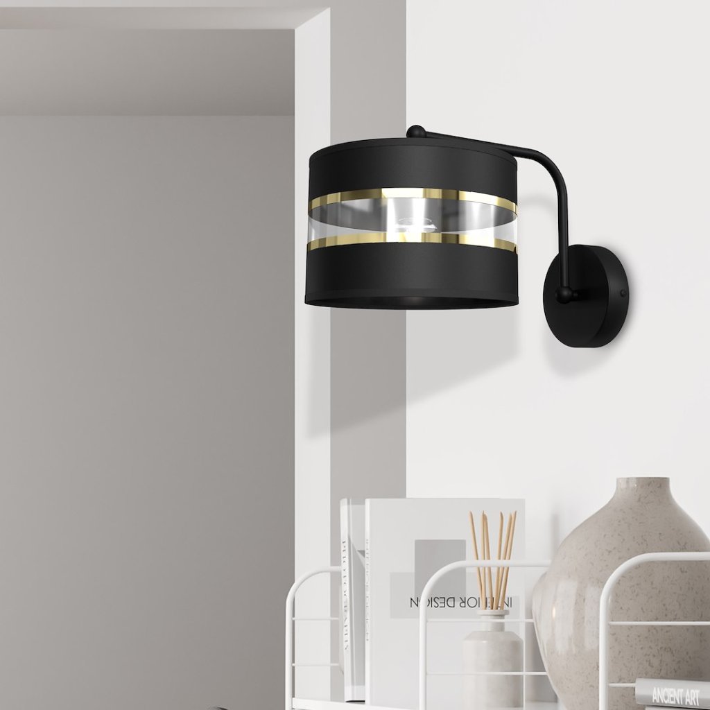 Kolekce svítidel ULTIMO je ukázkou elegantního minimalismu s důrazem na precizní zpracování a ušlechtilé materiály. Tento model nástěnného svítidla zaujme černo-zlatým textilním stínítkem , které je doplněno o průsvitný pás ve střední části, čímž získává jemný a přitom výrazný dekorativní prvek.