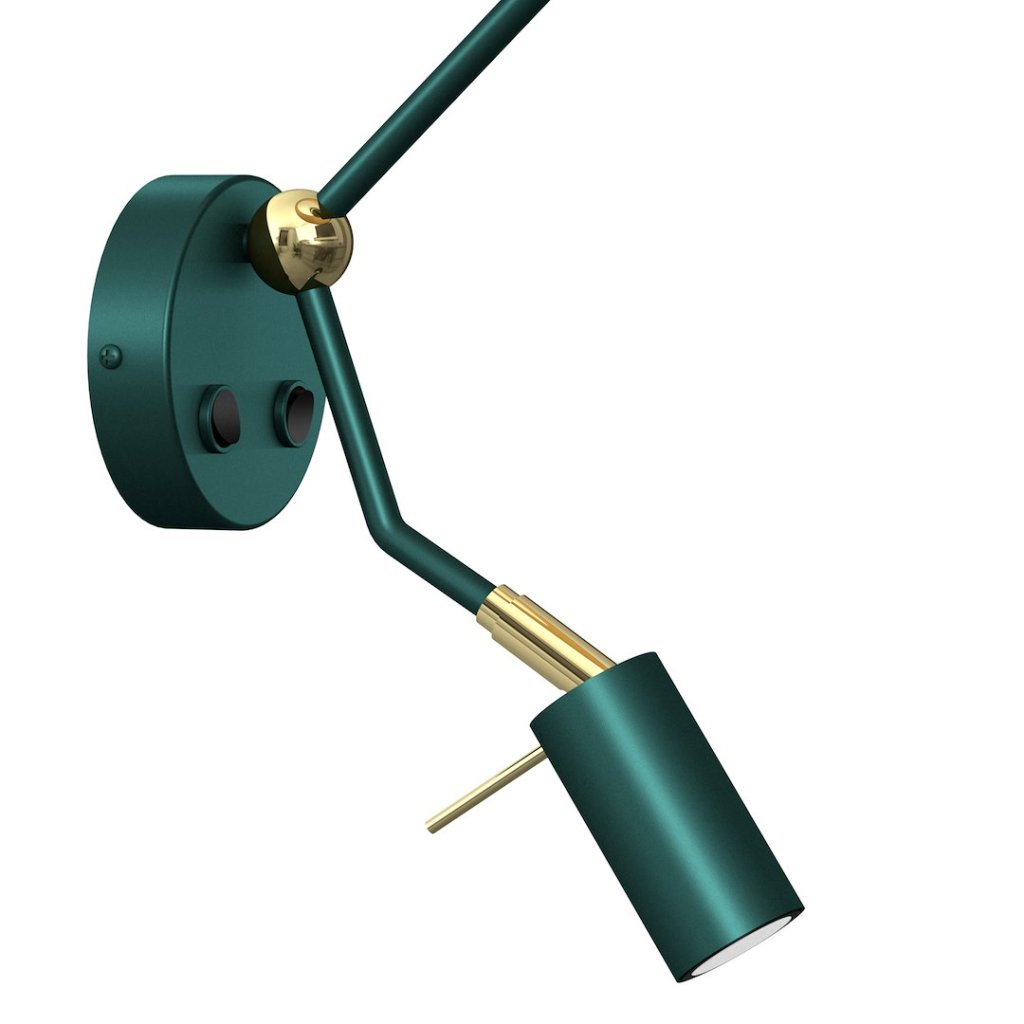 Kolekce Ziggy spojuje moderní design s jemnou elegancí a smyslem pro detail. Nástěnné svítidlo se zeleným textilním stínítkem a kovovým podkladem se zlatými akcenty je ideálním řešením do stylových a výrazných interiérů. Tento model je vybaven praktickým vypínačem na konstrukci, což z něj činí pohodlný a funkční doplněk k posteli, do čtenářského koutku nebo k pracovnímu stolku.