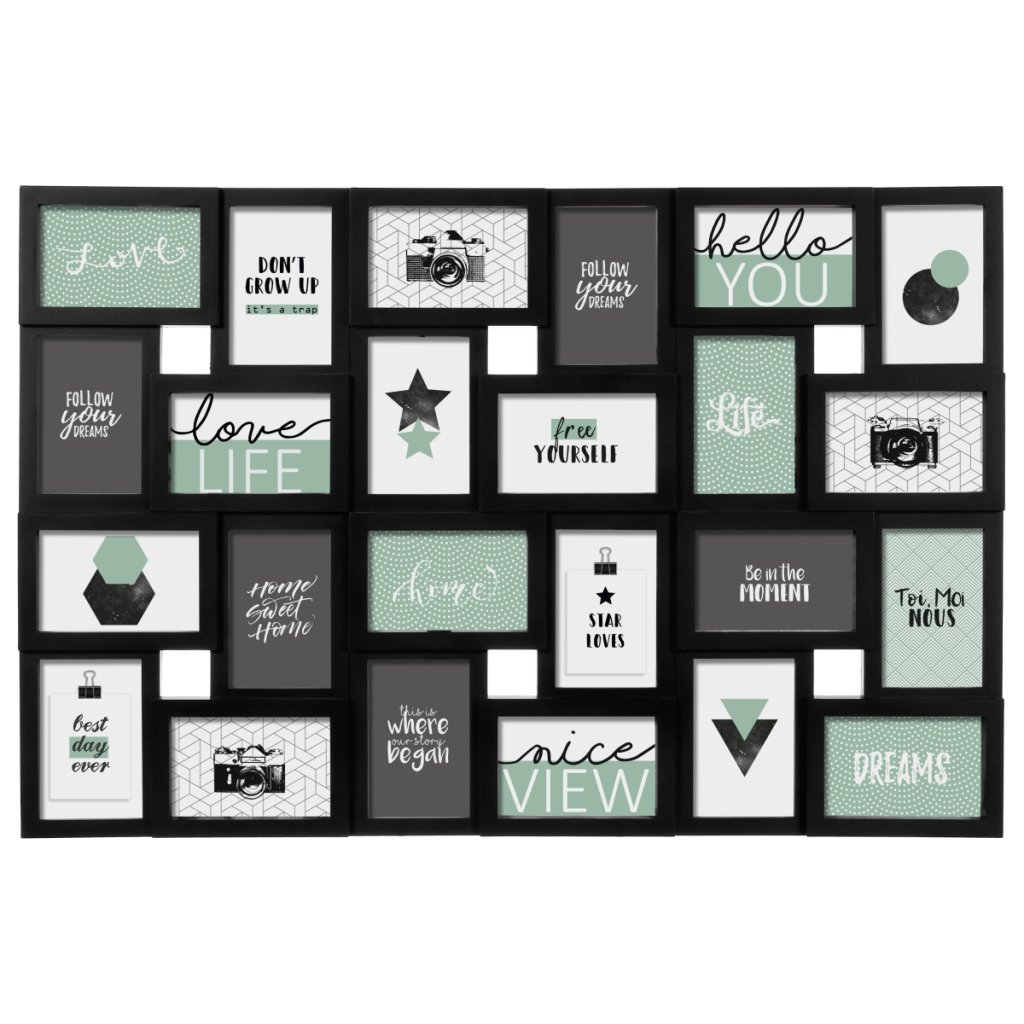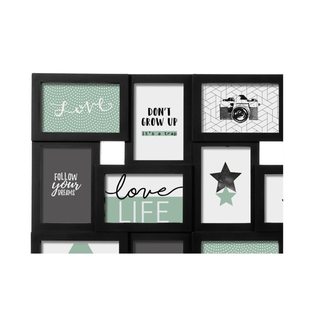 Kolážový fotorámeček, který nádherně předvede vaše oblíbené fotografie a bude zároveň působivou dekorací na zeď. Díky minimalistickému designu a černé barvě se rám hodí do všech typů aranžmá. Je vyroben z odolného plastu, díky čemuž vypadá velmi pevně a elegantně.Formát fotografie: 10x15 cm