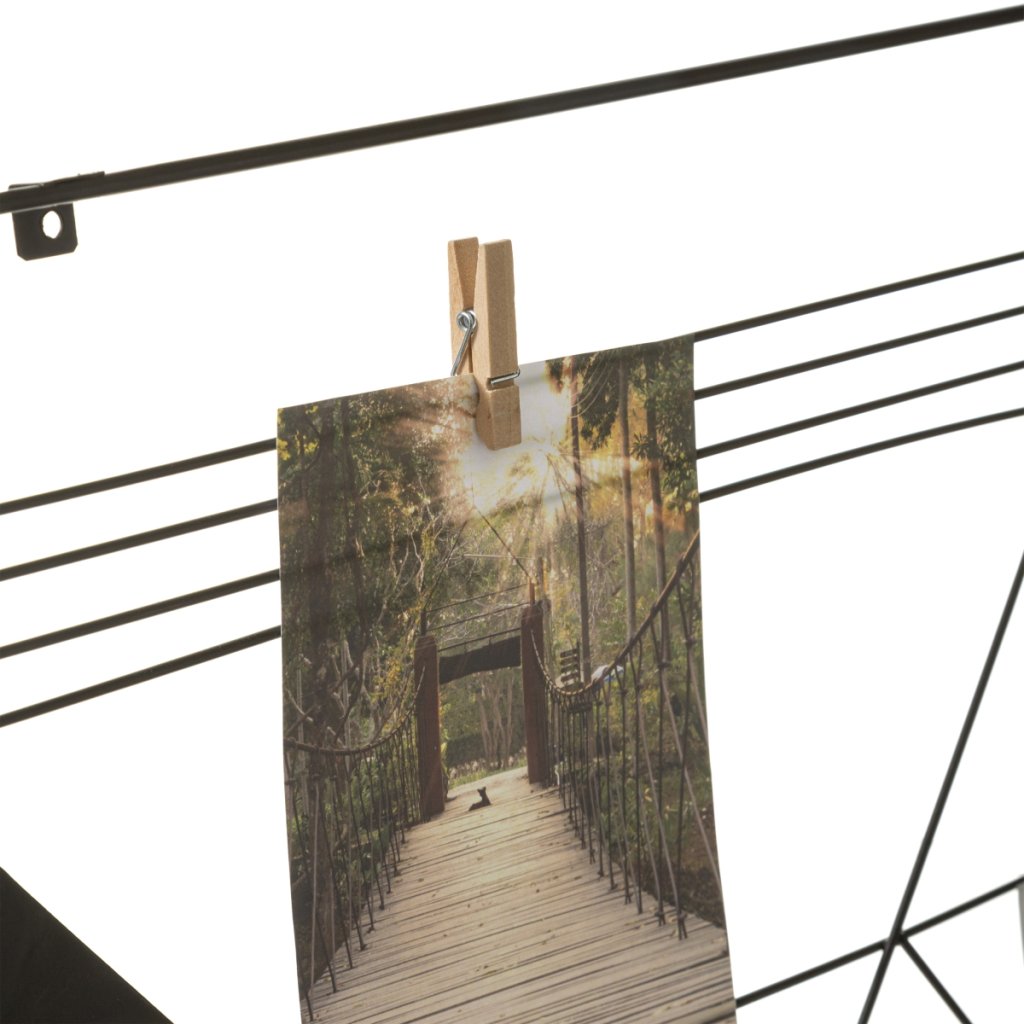 Fotorámeček na zavěšení na zeď, který může sloužit také jako organizér do kanceláře nebo kuchyně. Celý je vyroben z černého kovu. Díky minimalistickému designu a tlumeným barvám se rám hodí do všech typů aranžmá. Funkční doplněk, který vám umožní mít všechny vaše cenné fotografie a poznámky vždy na očích.Doplňkové parametry