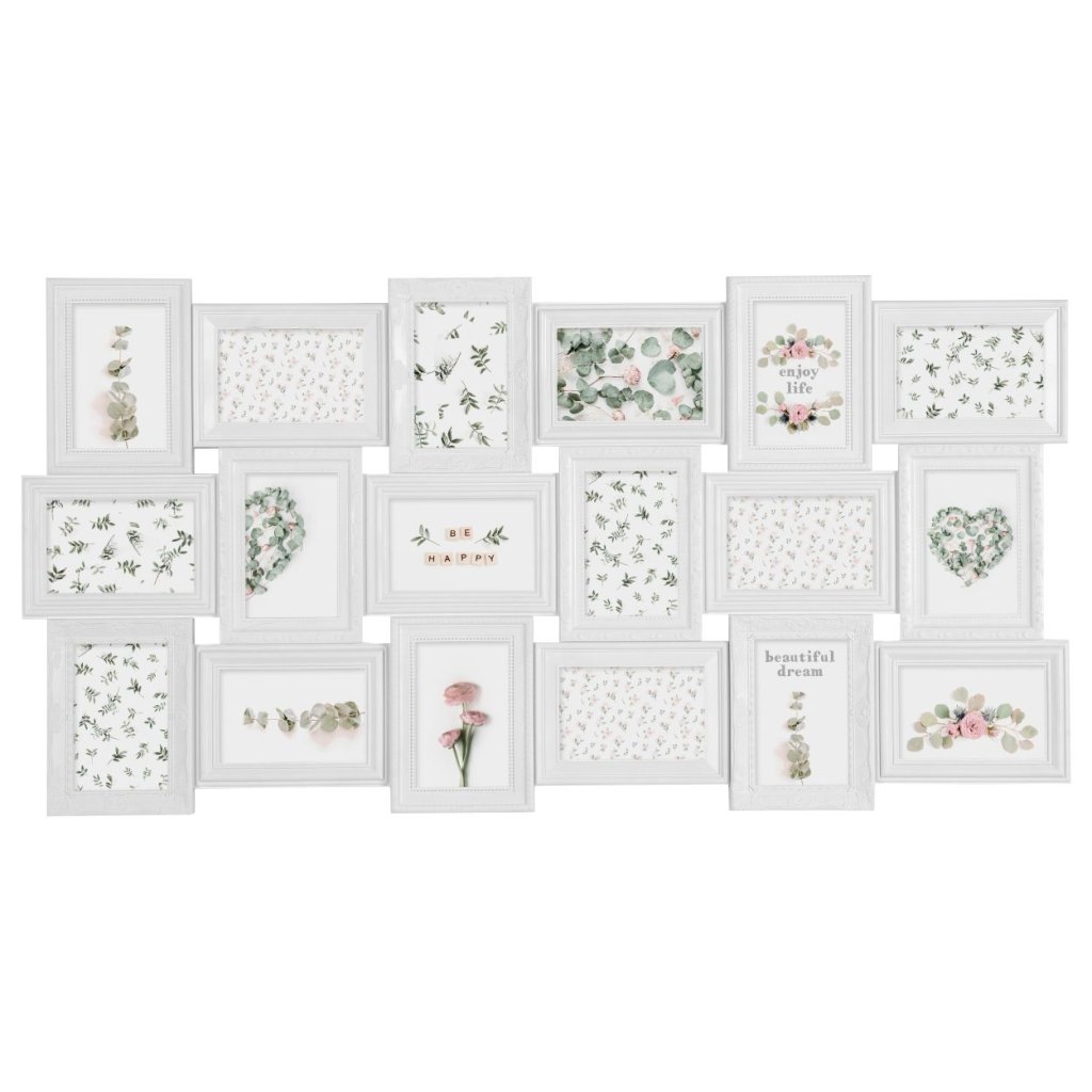 Kolážový fotorámeček, který nádherně předvede vaše oblíbené fotografie a bude zároveň působivou dekorací na zeď. Díky minimalistickému designu a bílé barvě se rám hodí do všech typů aranžmá. Je vyroben z odolného plastu, díky čemuž vypadá velmi pevně a elegantně.Formát fotografie: 10x15 cm