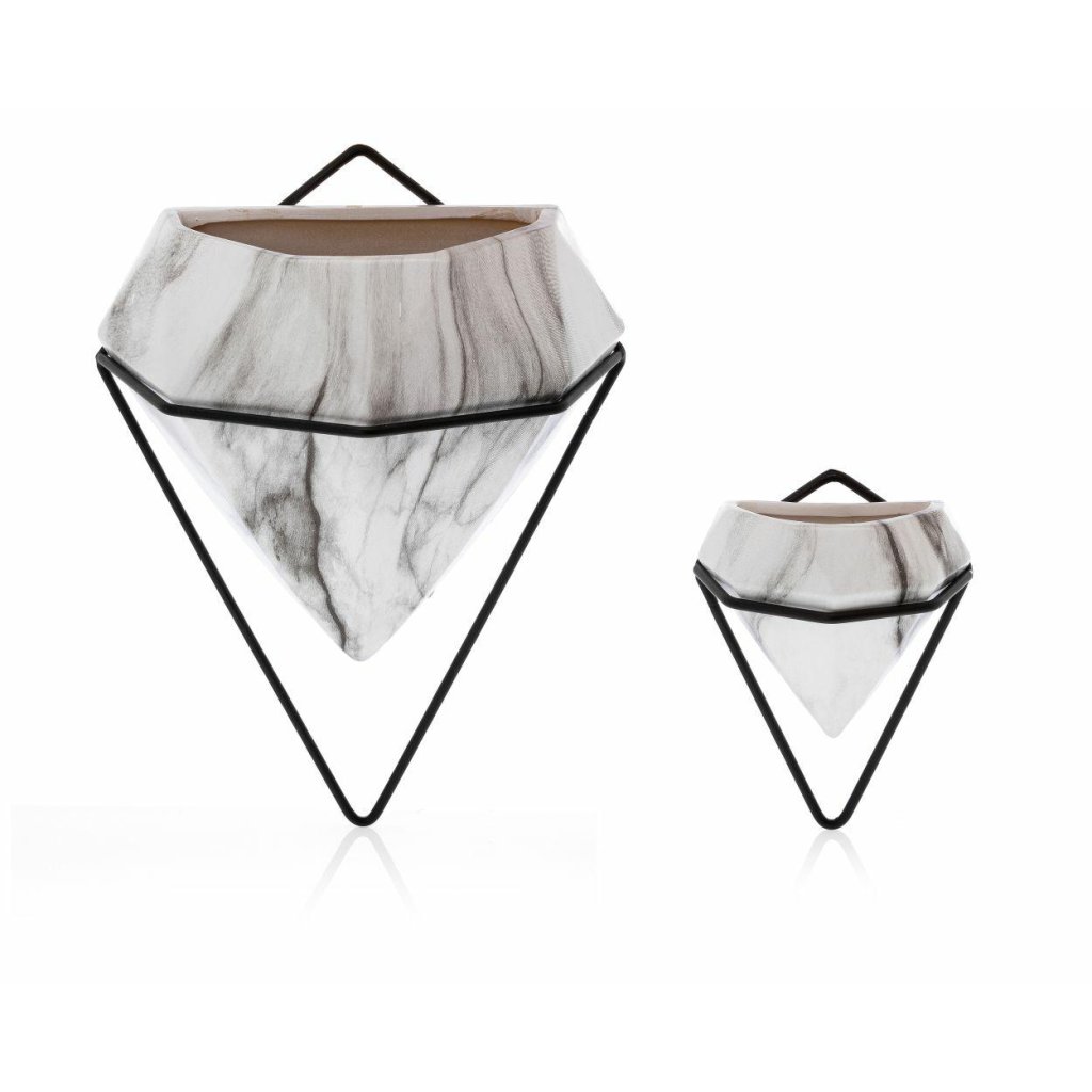 NÁSTĚNNÝ KERAMICKÝ KVĚTINÁČ SEMELA SADA 2KS 23X20X11,5 CM+14X10X6 CM BÍLÁ/ČERNÁ