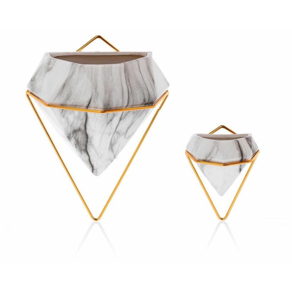 NÁSTĚNNÝ KERAMICKÝ KVĚTINÁČ SEMELA SADA 2KS 23X20X11,5 CM+14X10X6 CM BÍLÁ/ZLATÁ