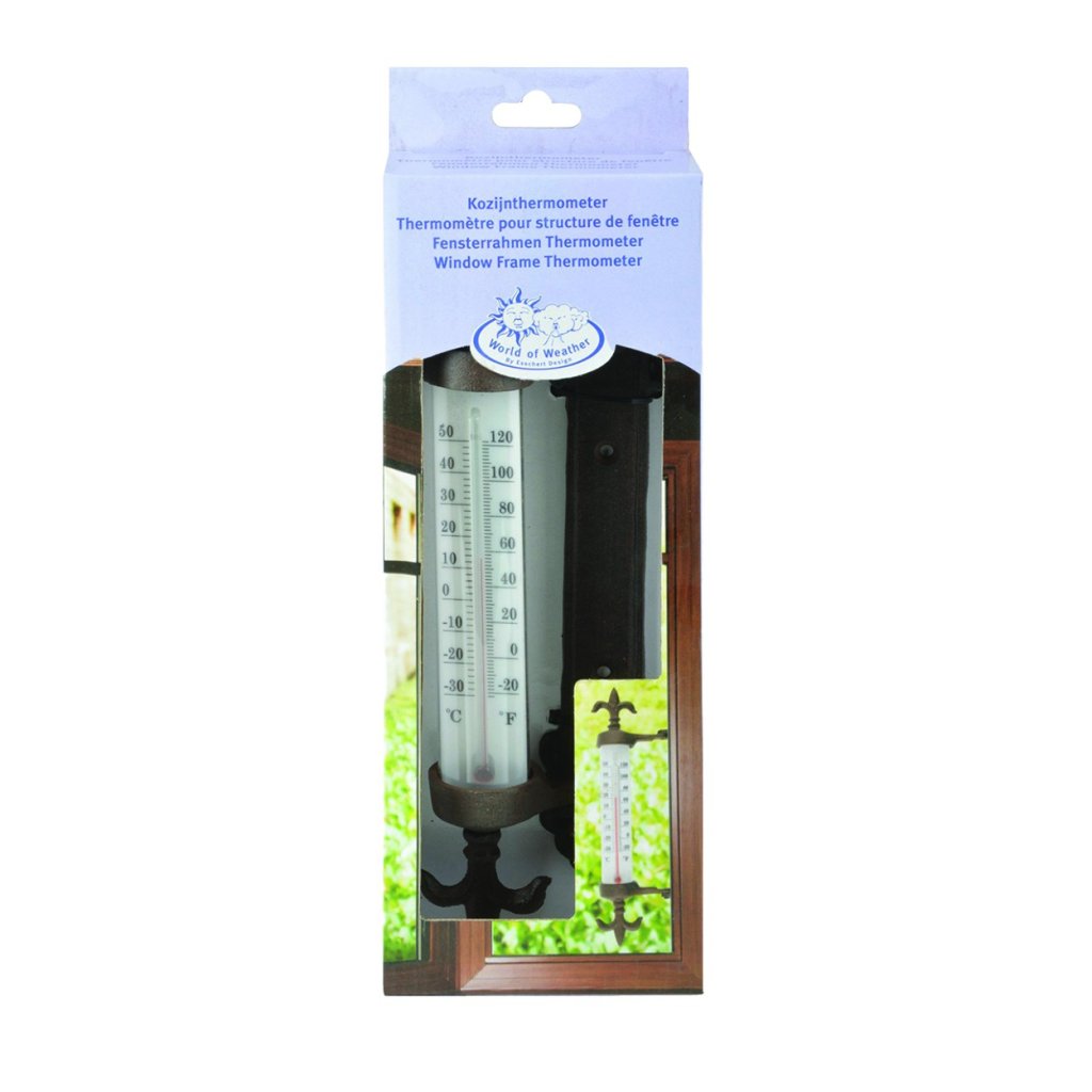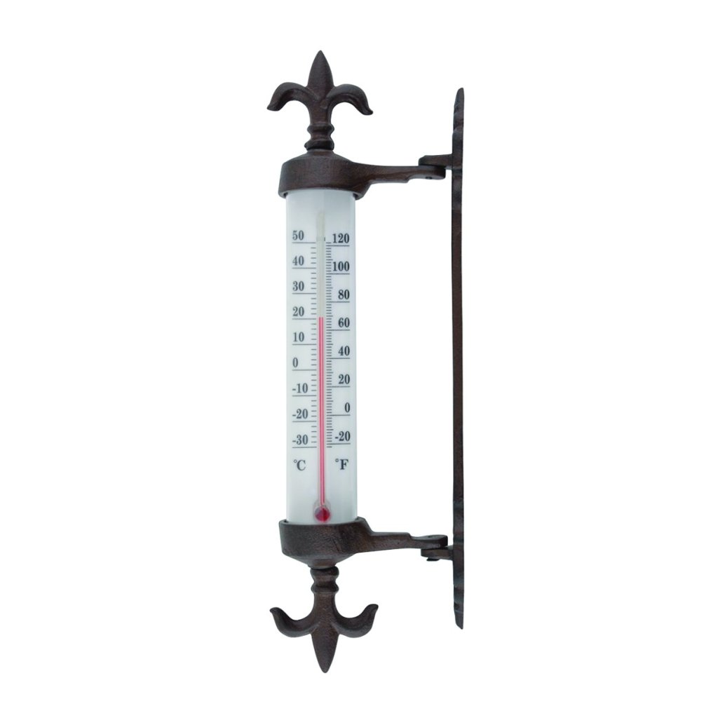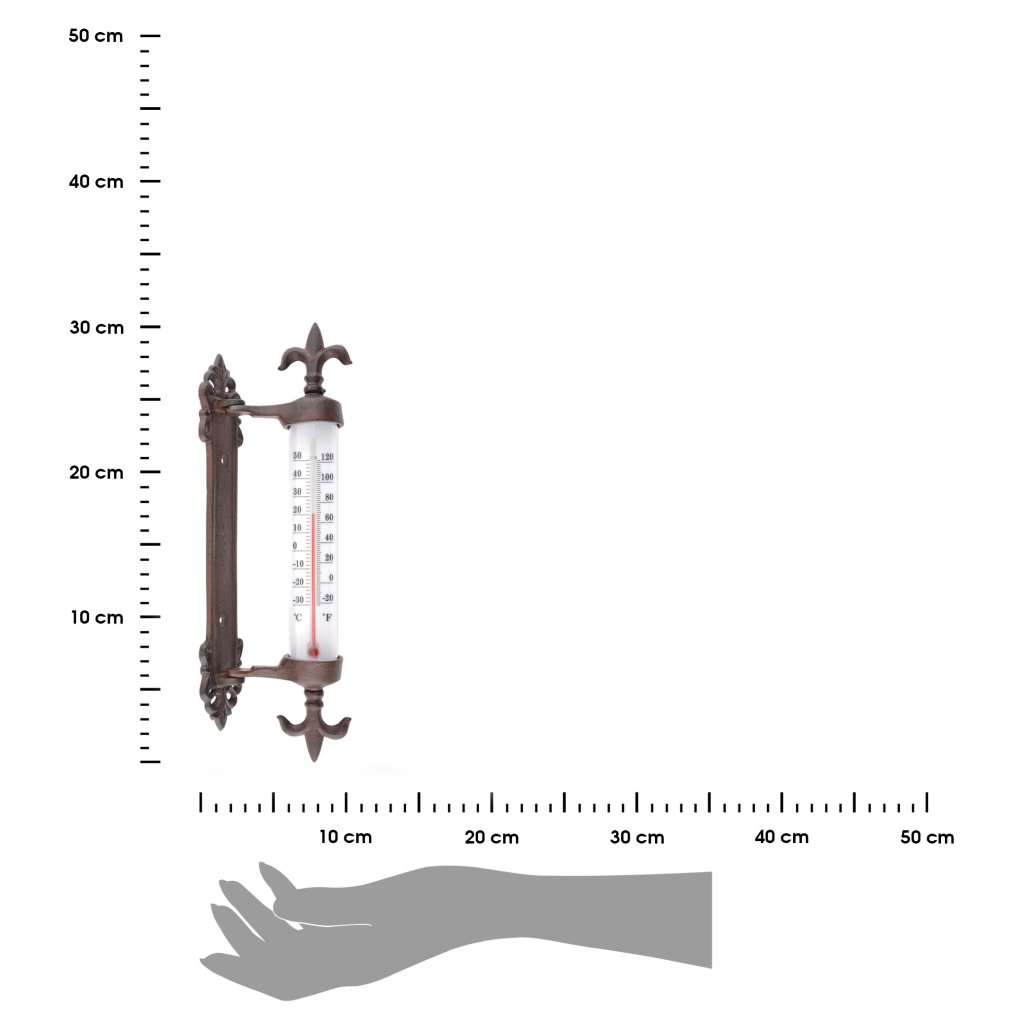 Nástěnný teploměr Vintage, 30,5x5,5 cm, litina, hnědá