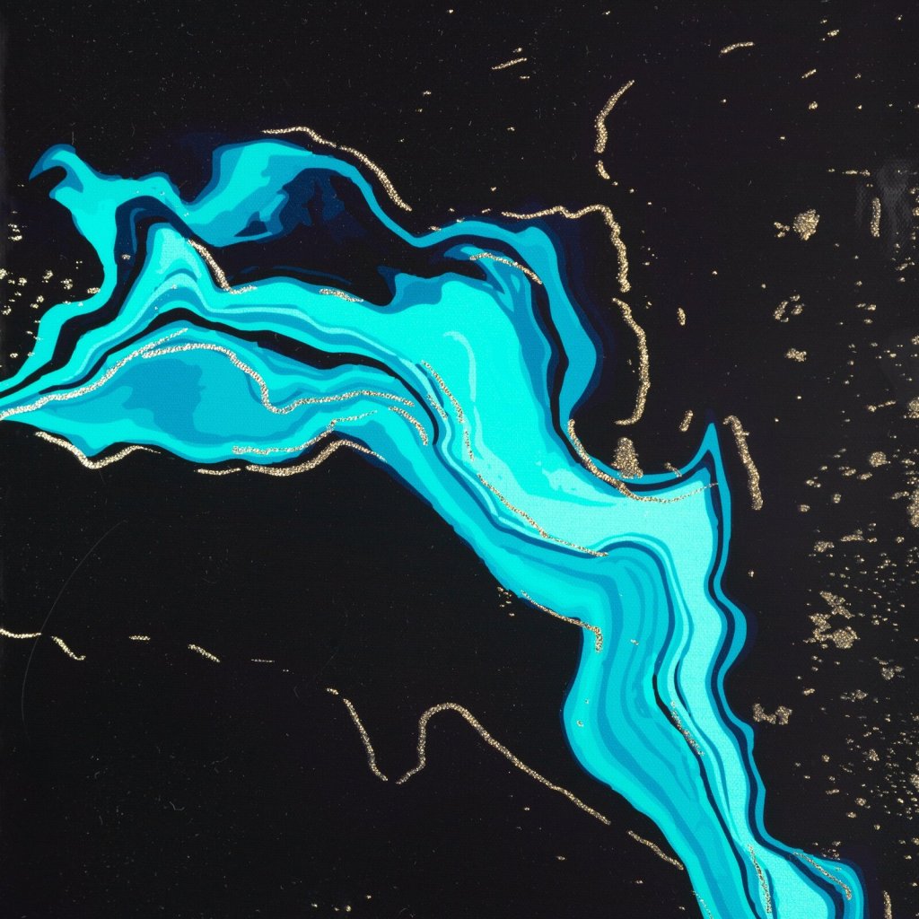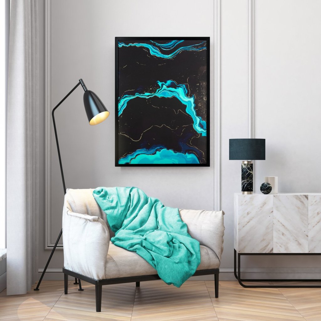 Tištěný obraz se zlatým ornamentem v rámu Šířka: 53 cm, Délka: 73 cm, Barva: tyrkysová/černá/zlatáDoplňkové parametry