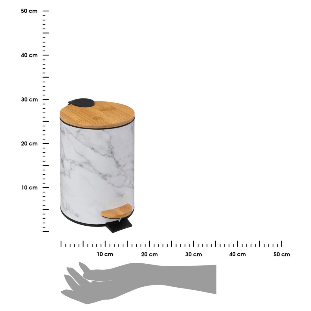 Odpadkový koš Lea White o rozměrech 25×16,8×16,8 cm je elegantní a praktický doplněk s jemným mramorovým vzorem , který výborně zapadne do moderní koupelny, kuchyně či kanceláře . Jeho design kombinuje minimalistickou bílou barvu s přírodním bambusovým víkem , čímž vytváří harmonický a stylový vzhled.