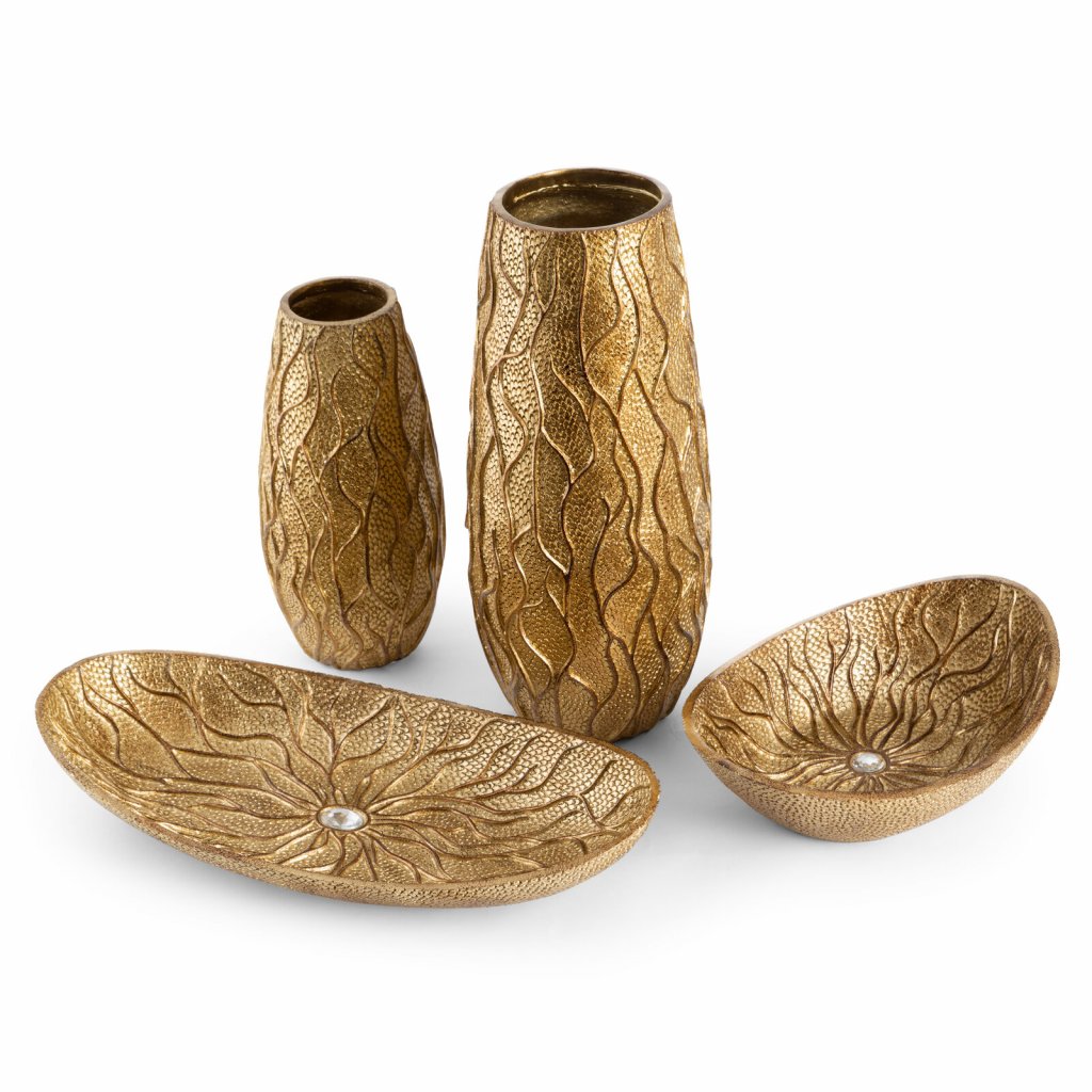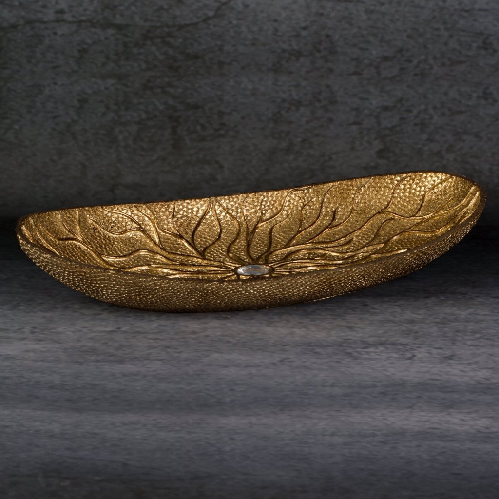 Dekorativní talíř šířka: 38 cm, délka: 18 cm, barva: zlatá, složení: 50% polyesterová pryskyřice 50% kameninaDoplňkové parametry