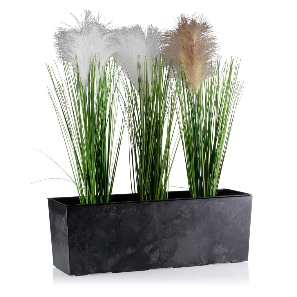 PLASTOVÝ KVĚTINÁČ BOUQUET 56X19 CM IMITACE BETONU ČERNÁ
