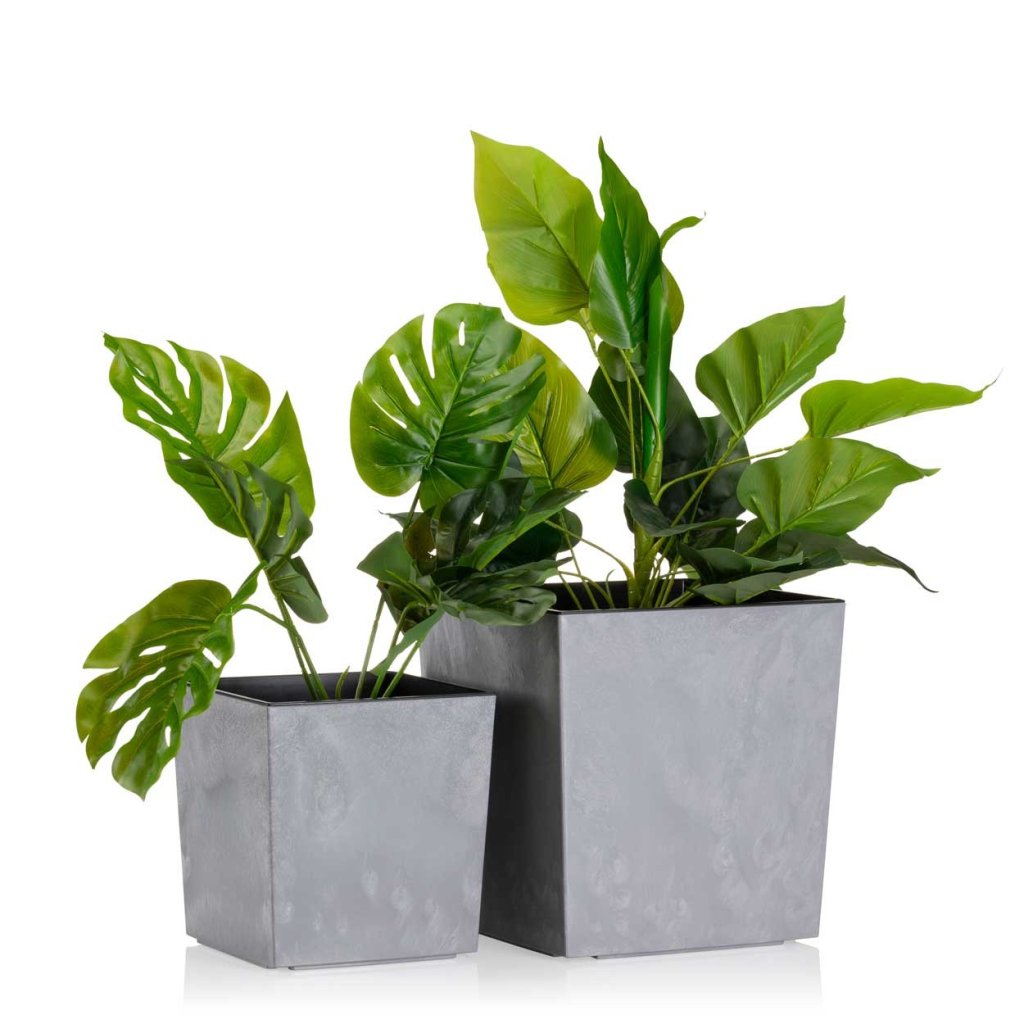 PLASTOVÝ KVĚTINÁČ FLORE 19X19 CM IMITACE BETONU ŠEDÁ
