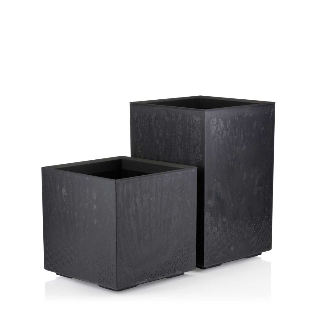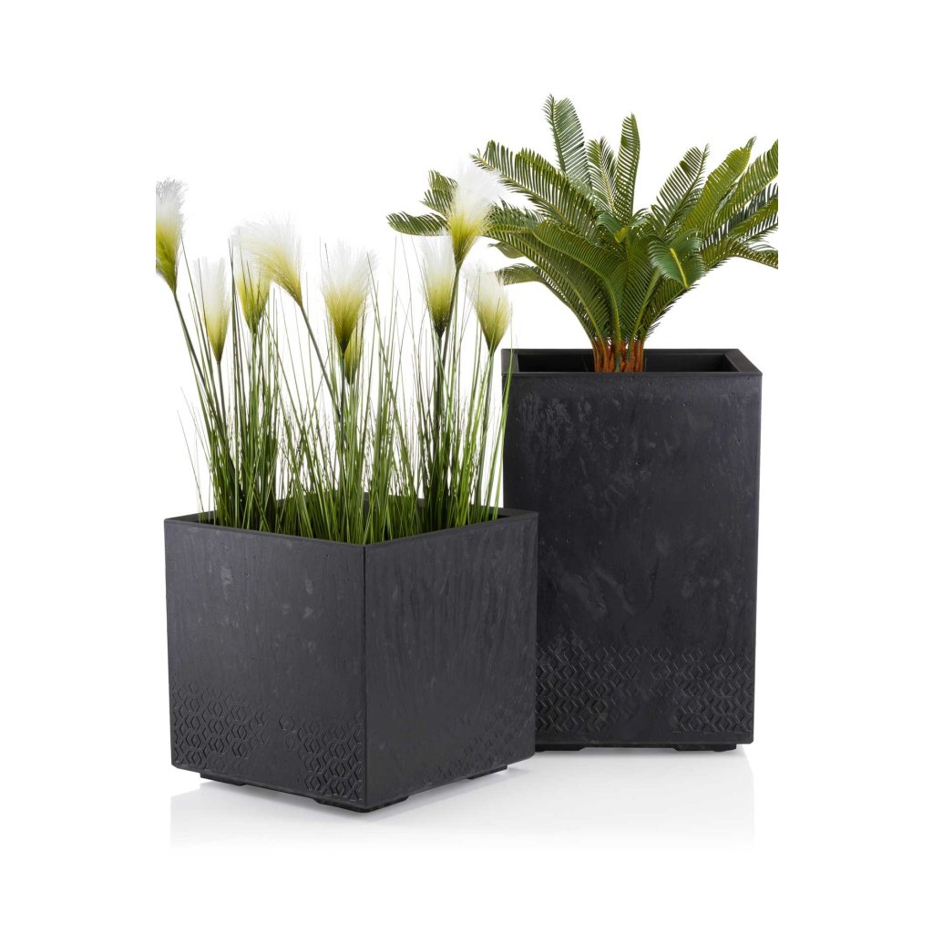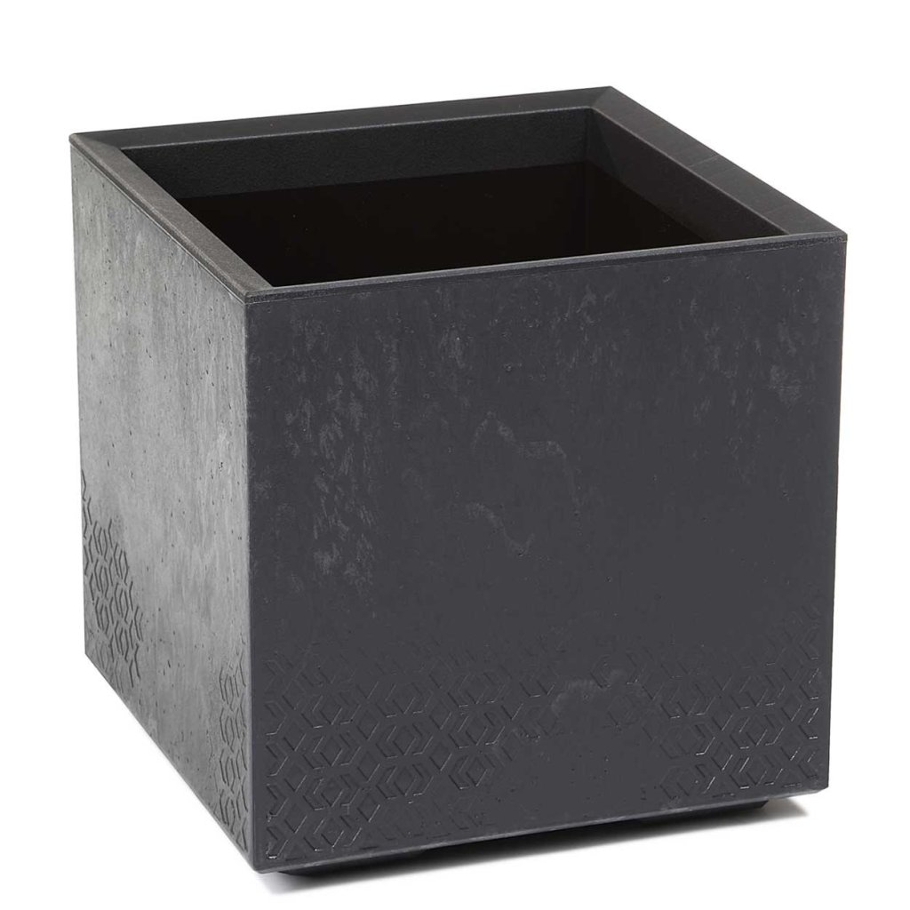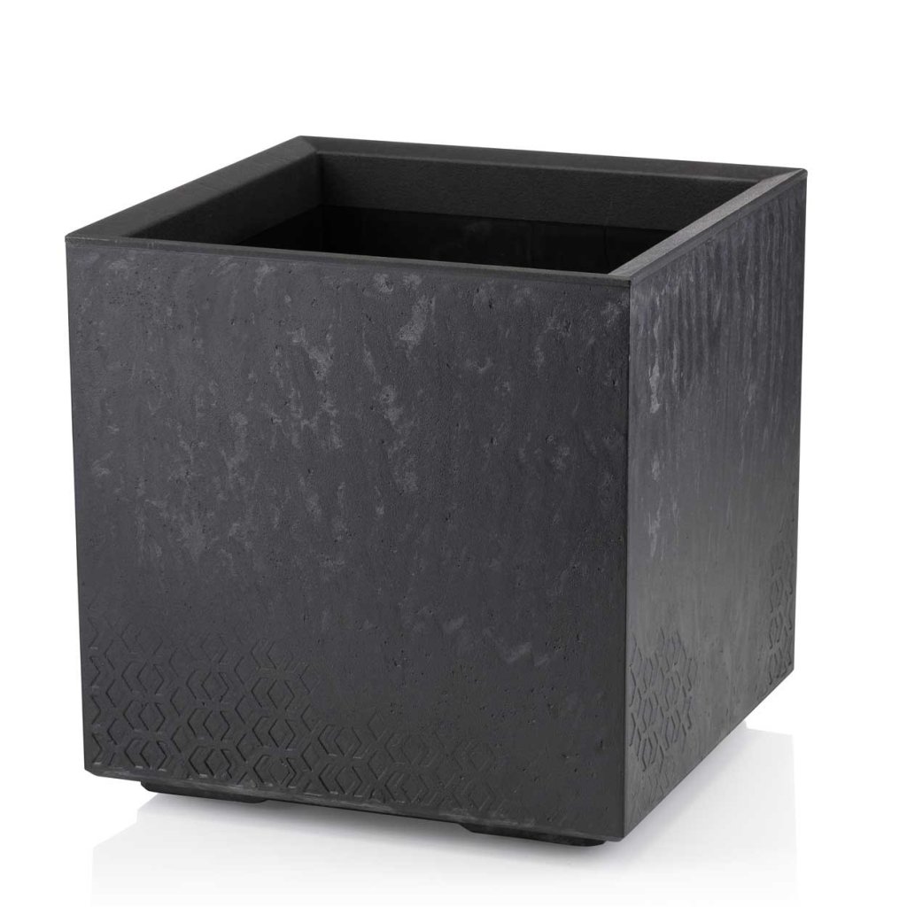 PLASTOVÝ KVĚTINÁČ NA KOLEČKÁCH BETONIQUE 40X40 CM IMITACE BETONU ČERNÁ