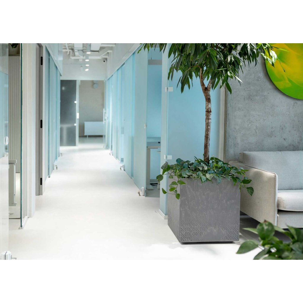 PLASTOVÝ KVĚTINÁČ NA KOLEČKÁCH BETONIQUE 40X40 CM IMITACE BETONU ŠEDÁ