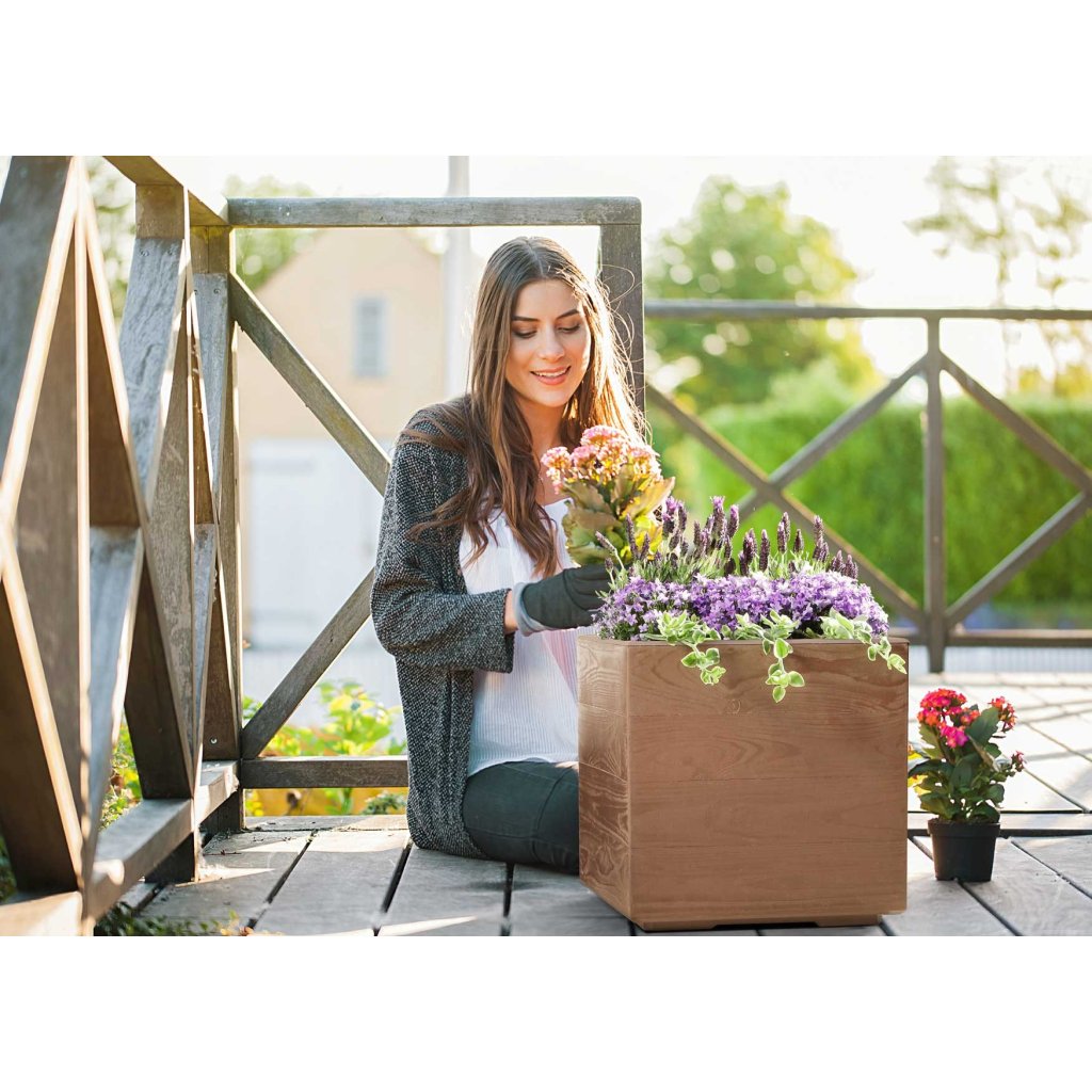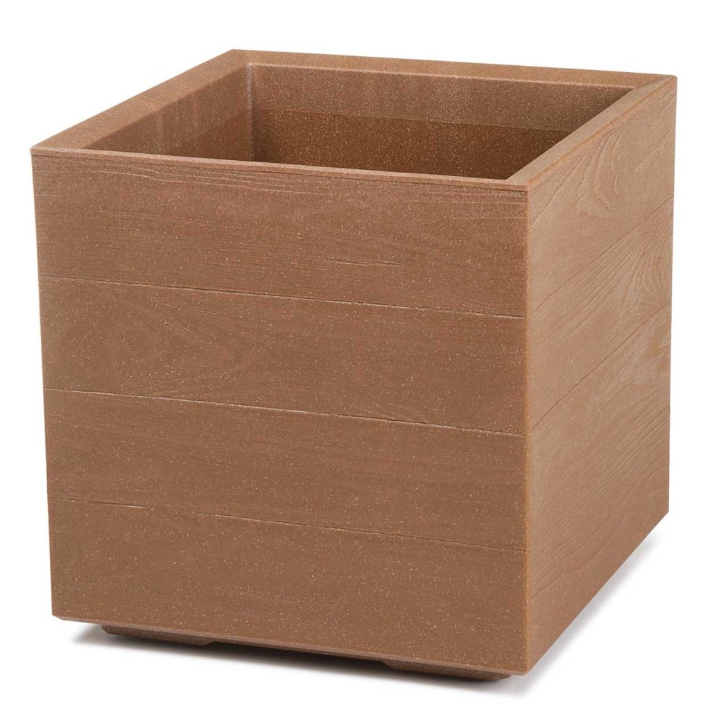 PLASTOVÝ KVĚTINÁČ NA KOLEČKÁCH BETONIQUE ECO 40X40 CM DŘEVĚNÝ DEKOR HNĚDÁ