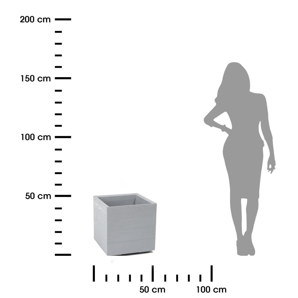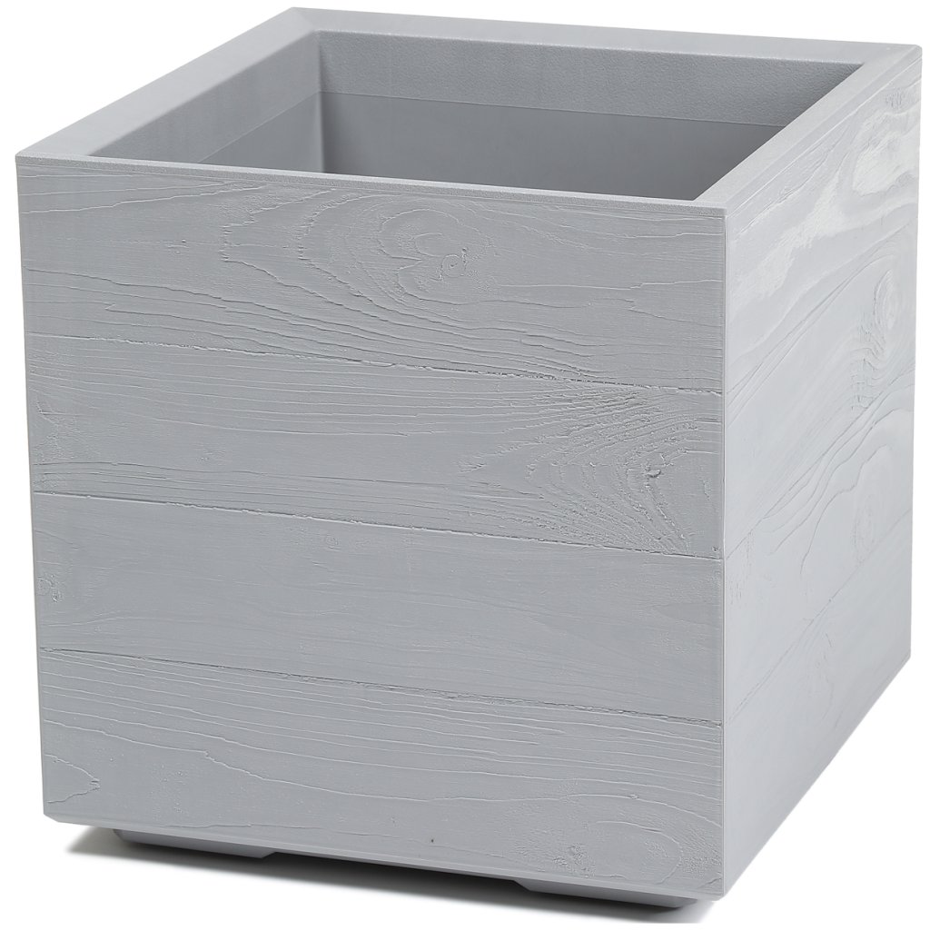 PLASTOVÝ KVĚTINÁČ NA KOLEČKÁCH BETONIQUE ECO 40X40 CM DŘEVĚNÝ DEKOR ŠEDÁ
