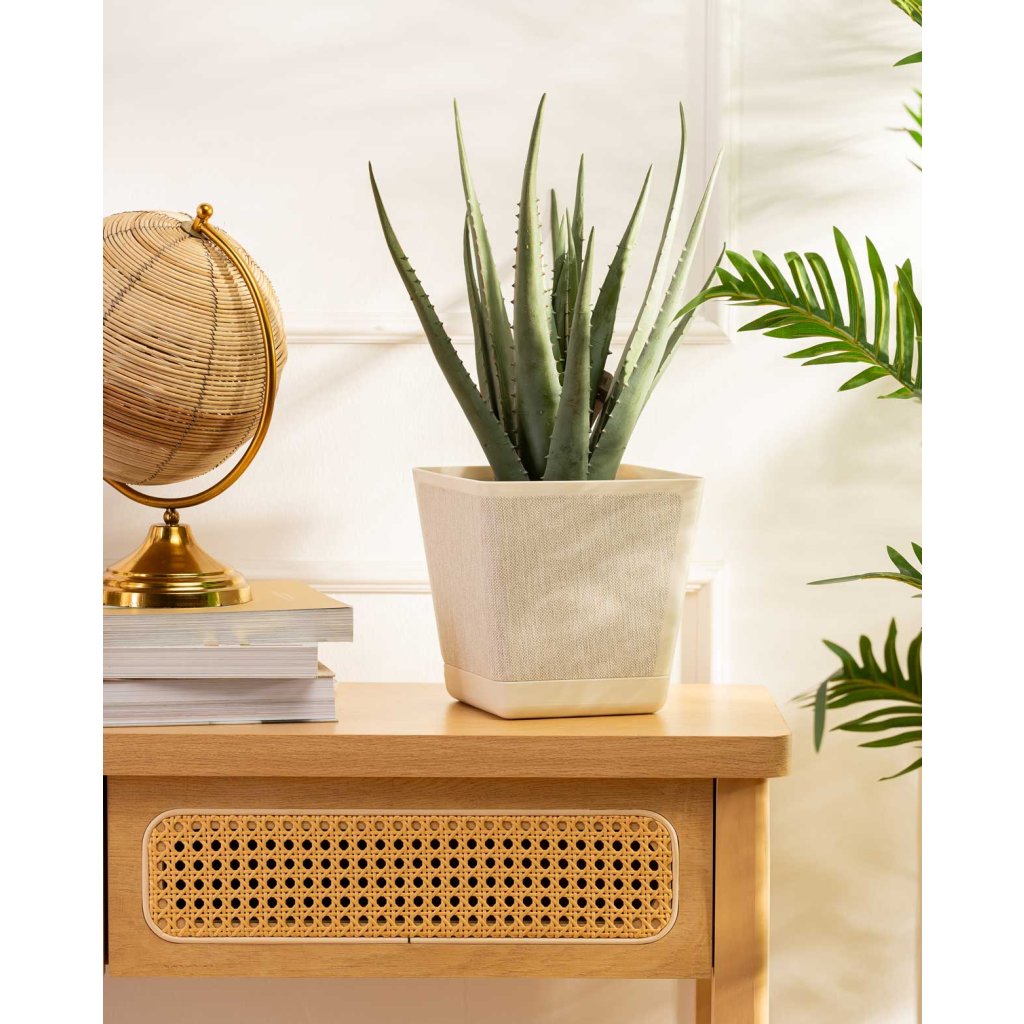 PLASTOVÝ KVĚTINÁČ PILEA TX 18X18 CM KRÉMOVÁ