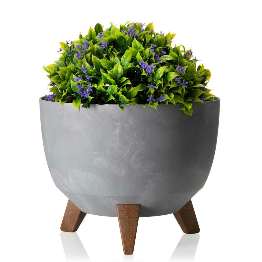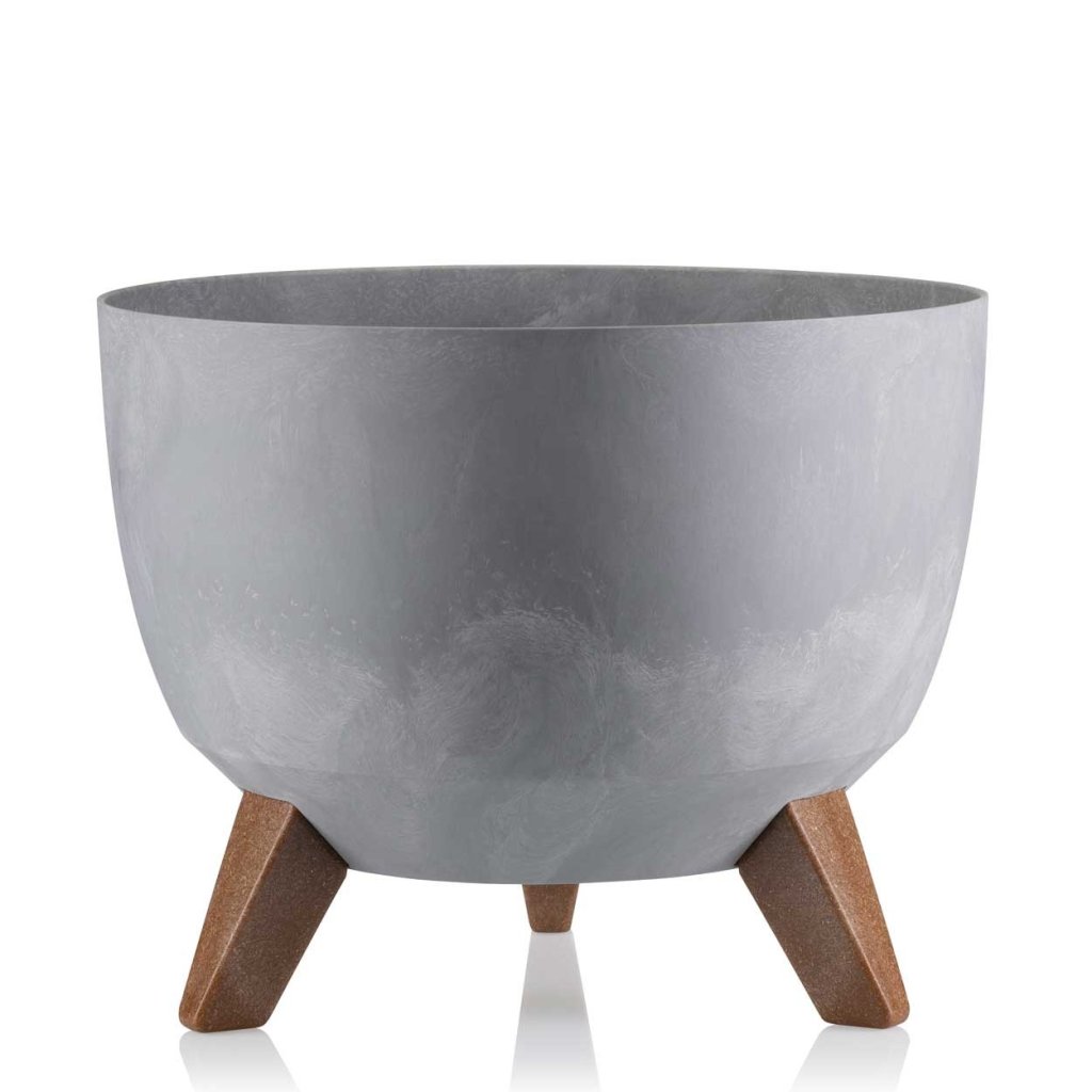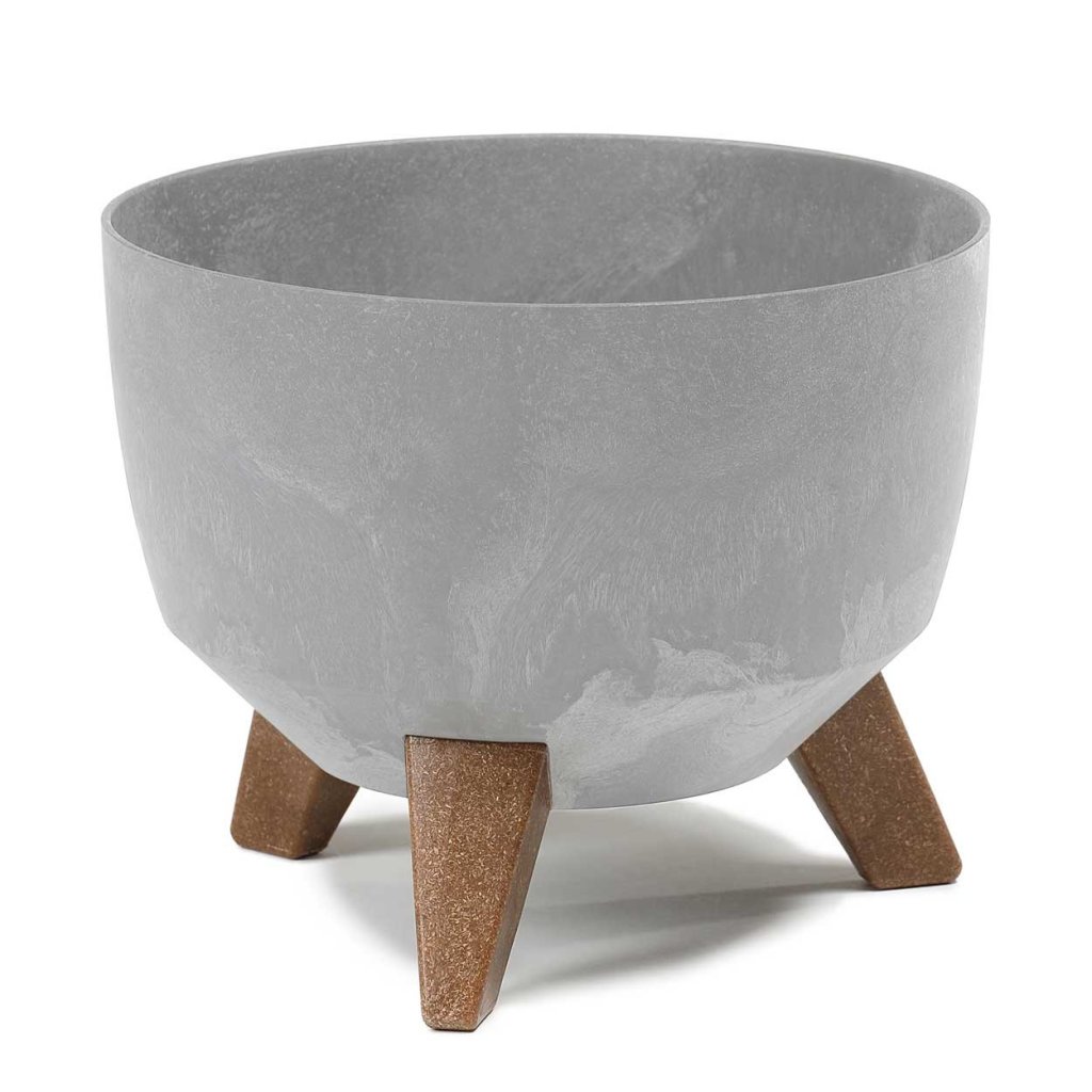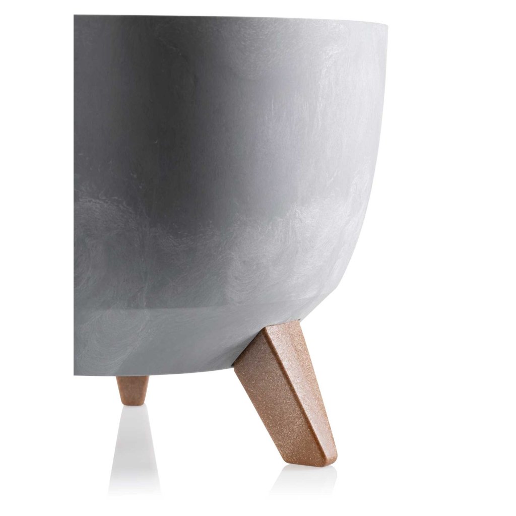 Květináč, který zaujme svým designem a praktičností. Jeho moderní styl z něj činí krásnou dekoraci na každou terasu, balkon, také je ideální do každého interiéru v domácnosti. Design dokonale ladí se zelenými rostlinami, které spolu vytvářejí harmonii estetiky a funkčnosti. Díky dřevěným nohám působí květináč noblesním dojmem.Produkt se pyšní odolností, při které konstrukce zajišťuje bezpečnost rostlin. Květináč je vyroben z pevného plastu, nepraská, nedeformuje se ani nevybledne vlivem povětrnostních podmínek. Navíc květináče s dekorem dřeva obsahují značný podíl recyklovaného dřeva.